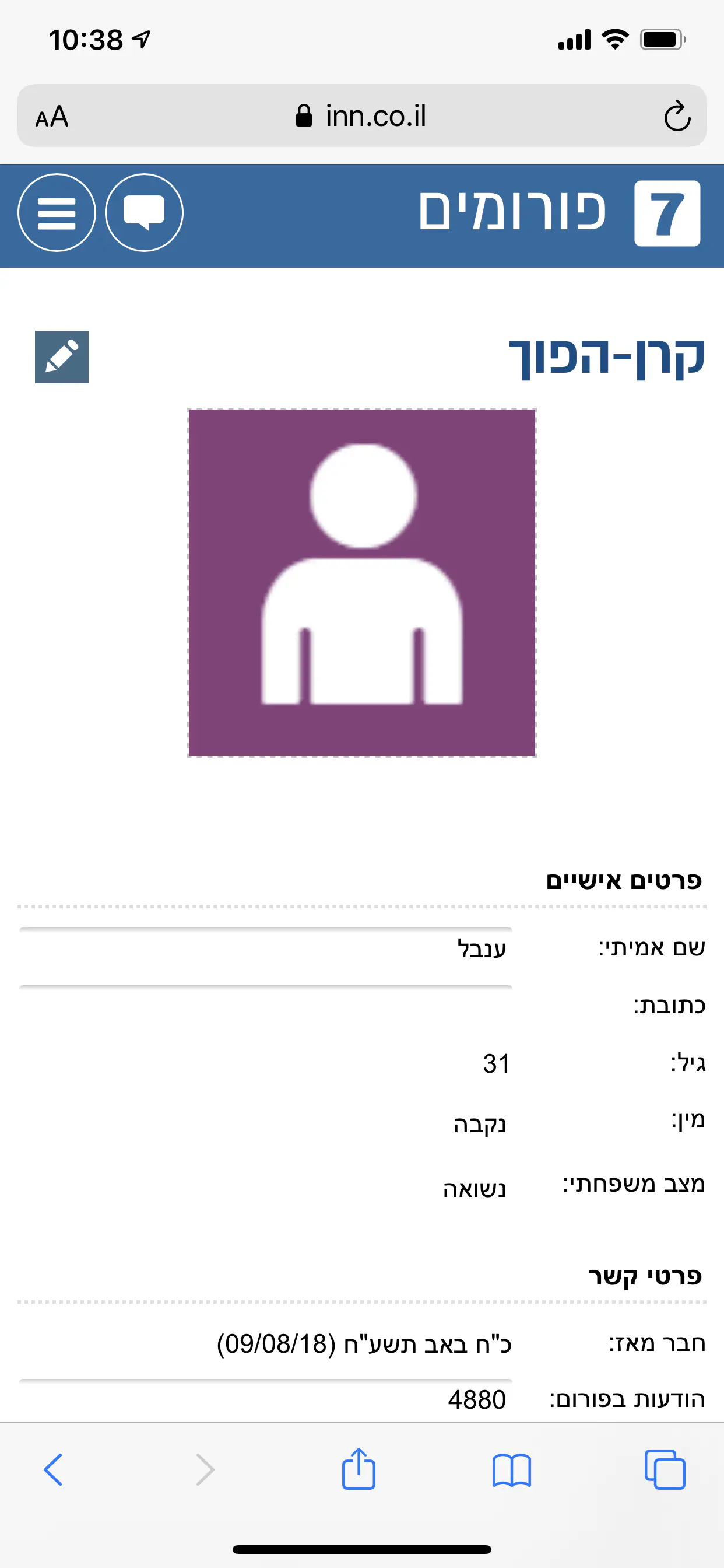 ואין תגובה בלחיצה על סמל העפרון לעריכת פרטים אישייםקרן-הפוך