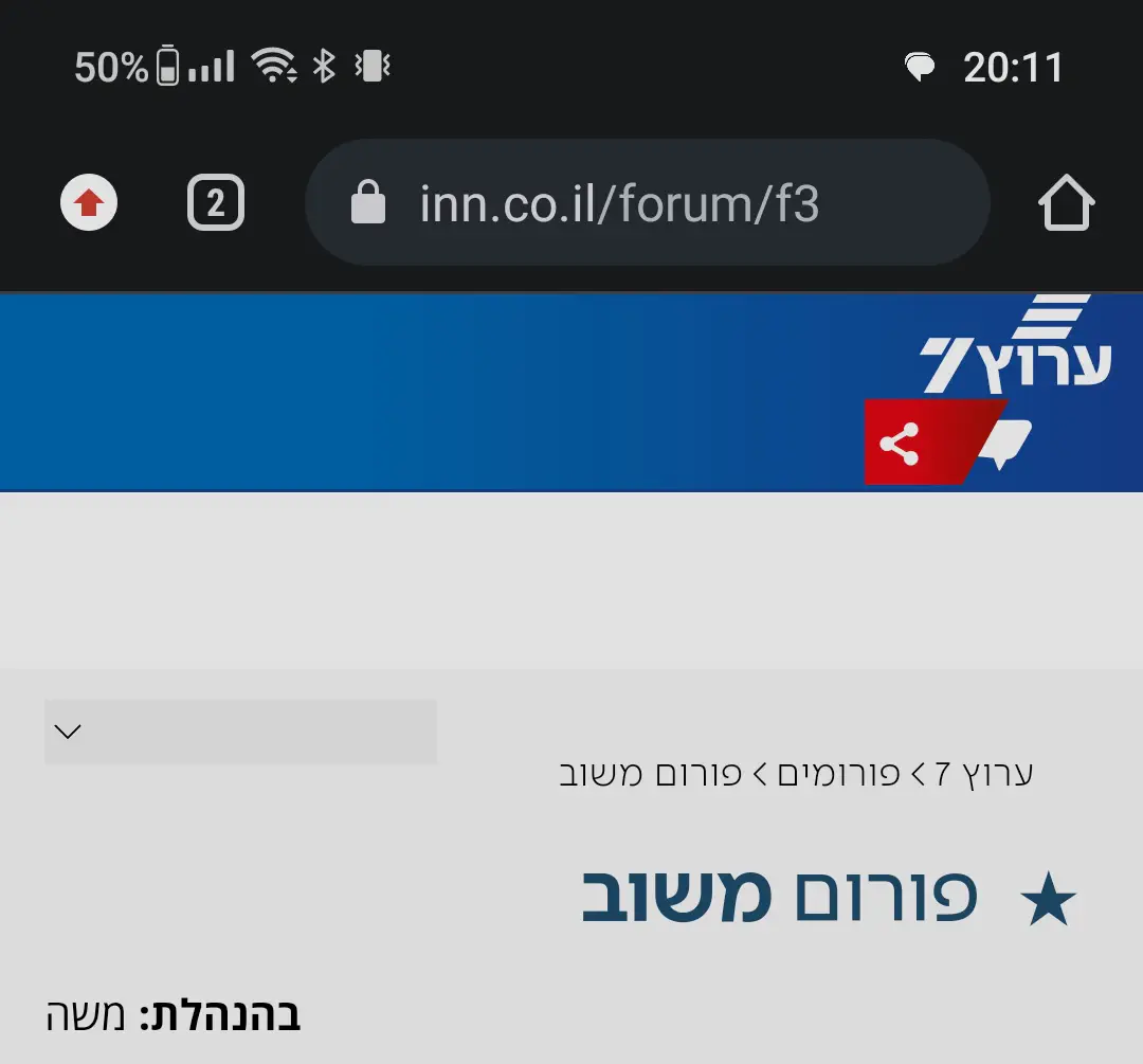 יש לי את האפליקציה של ערוץ 7 בחצי טאצ' והיא עובדת מצוין אבל בכל פעם שאני מנסה להיכנס לפורומים דרך האפליקציה הפורומים פשוט לא נפתחים כלומר אני נכנס לתפריט לוחץ על הכפתור "פורומים" וזה נשאר בדף הבית הראשי של ערוץ 7.