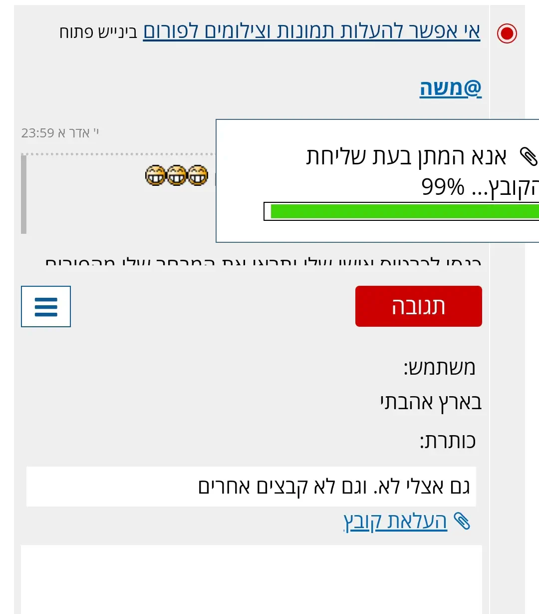 העלאת קובץ עובד רק בעריכהחילזון 123