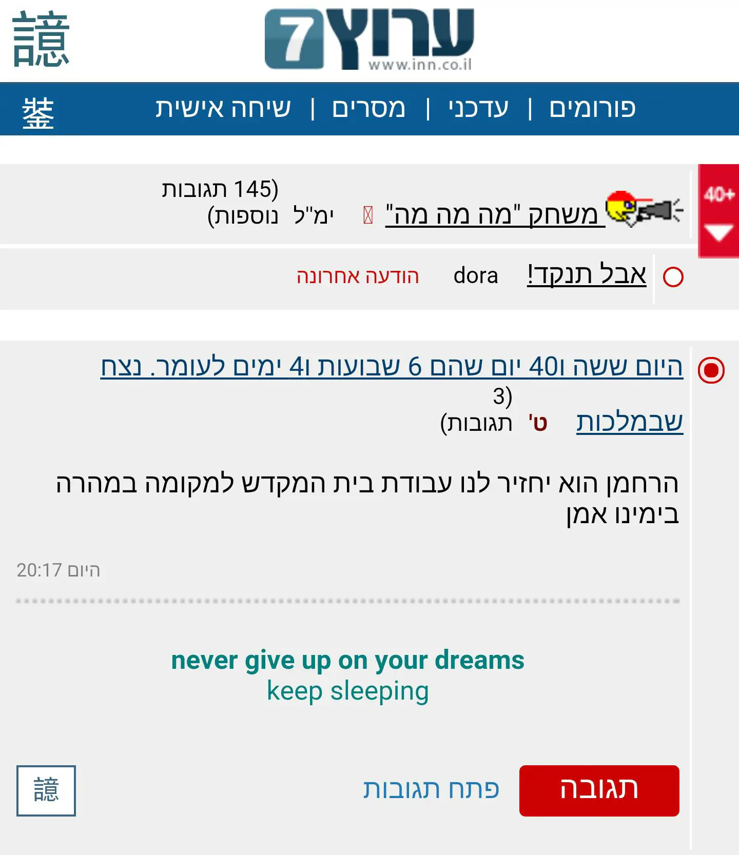 איך רואים למי הגיבו בשירשור ארוך?אורה2x