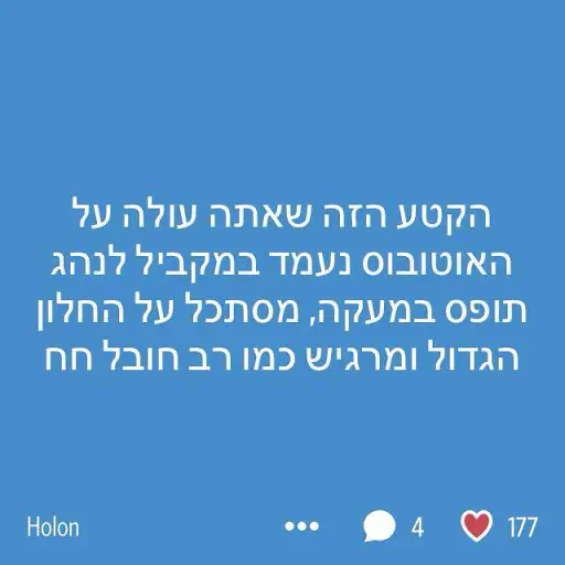 יום אחד היא עלתה לאוטובוס, ואחרי כמה תחנות היא רצתה לרדת, אז היא אמרה לנהג : "אני צריכה ללדת"