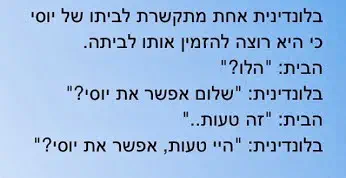 אז היא אומרת- יאוו אני נראת נורא! אומר לה הבחור-כן, וגם נשפך עלייך קולה...!