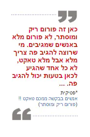 אל תקראי! אנשים רוצים לפרוק, זכותם. לכן עושים את זה במקום שלא כולם קוראים בכוונה.