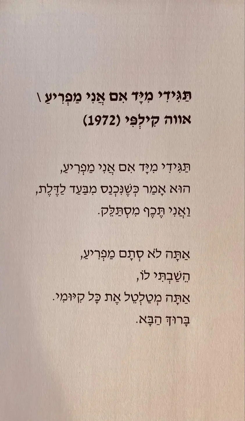 וכן, אני קצת רחוקה מרעיונות רוחניים נעלים כי אני עוהדת ב- 2 עבודות ולומדת תואר וצריכה להשלים בחינות ועכשיו מצאתי עוד עבודה חדשה וצריך כסף הביתה ואני רוצה גם להשקיע באהבה, אז כן, זה מתספס לי, אז כן, אני שוקעת בחומר ובעשייה, ונפשי לא ברוח כרגע, מצטערת.