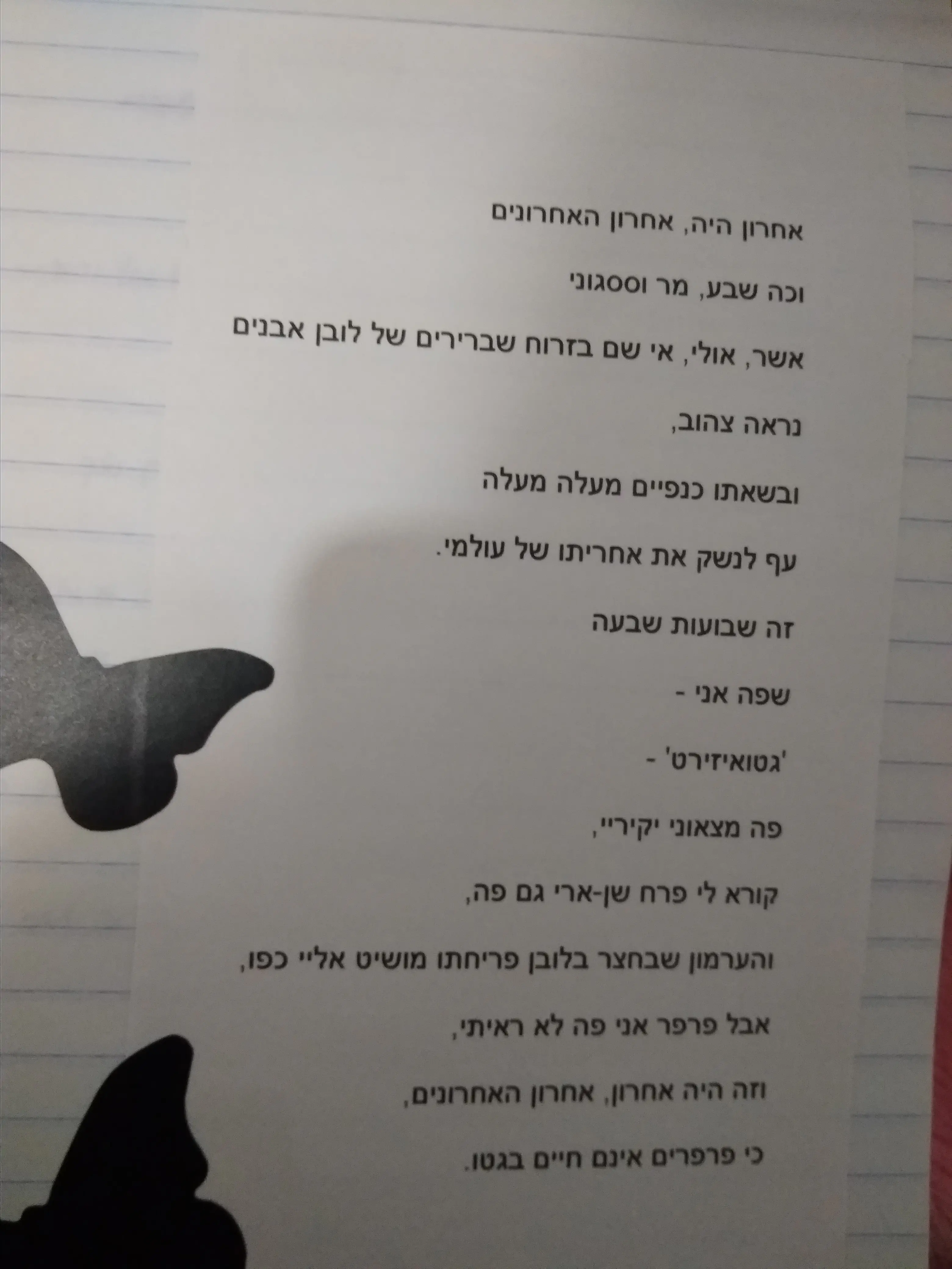 קראתי בשבת את כל הספר הפלאי הזה, והגעתי לפסוק הזה וחשבתי,