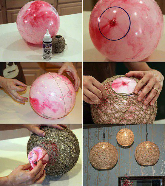תדביקי מסביב לכדור קלקר קיים בגדלים שונים ונמכר בחנויות יצירה תעבירי חוט שקוף לתלייה בחדר, הרגשה כמו של גני אירועים ילדים אוהבים את זה.