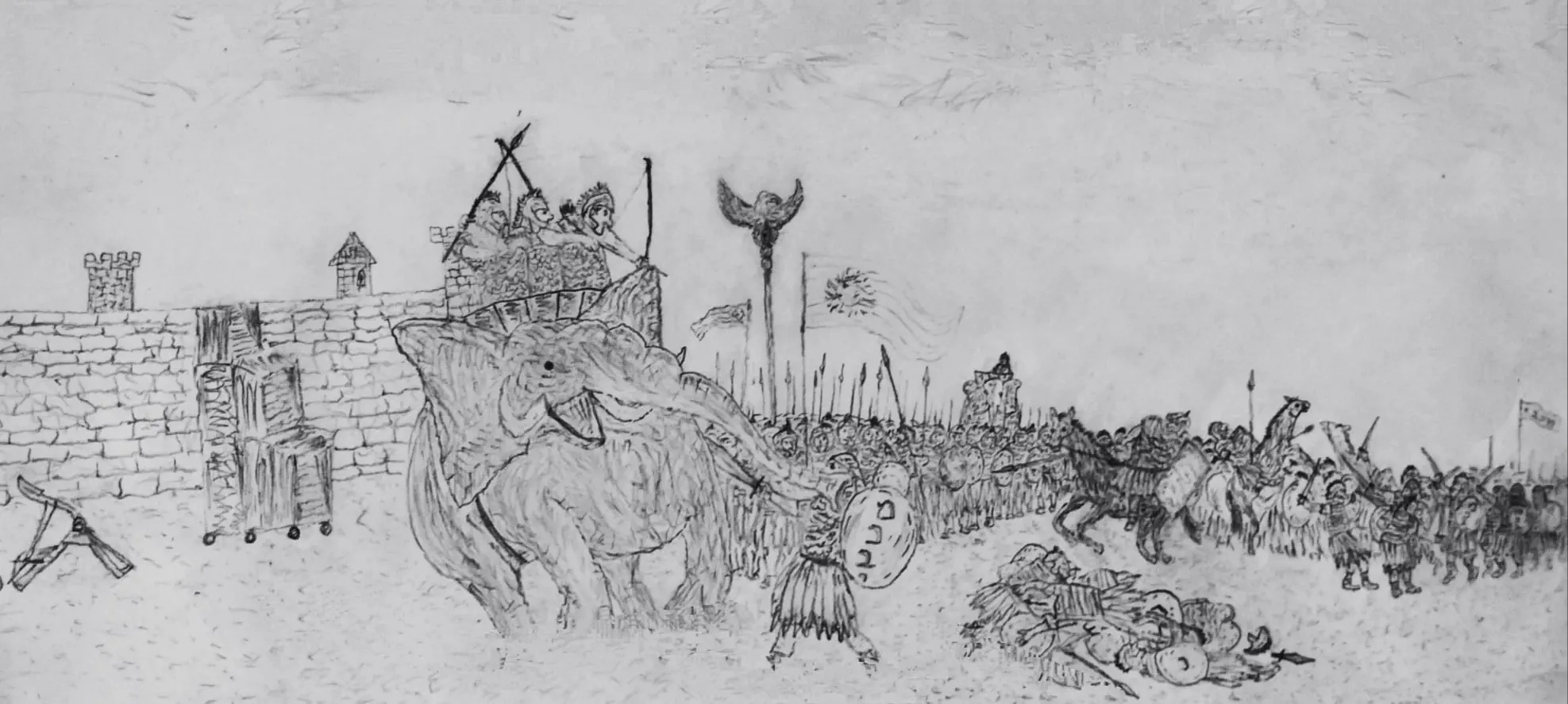 "הפיל הזה, ורוכבו" הצביע יהודה לעבר הפיל, הנשקף מתוך עמק המלחמה.