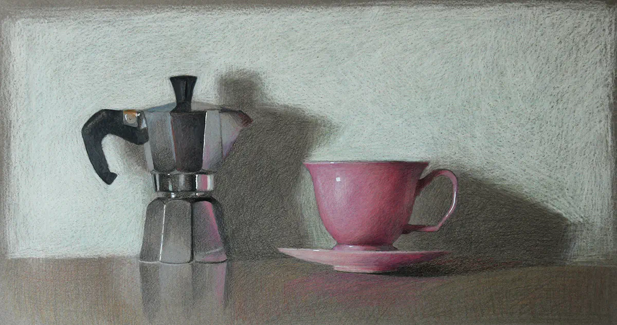 קפה - רישום טבע דומם בעפרונות צבעונייםroniyoffe