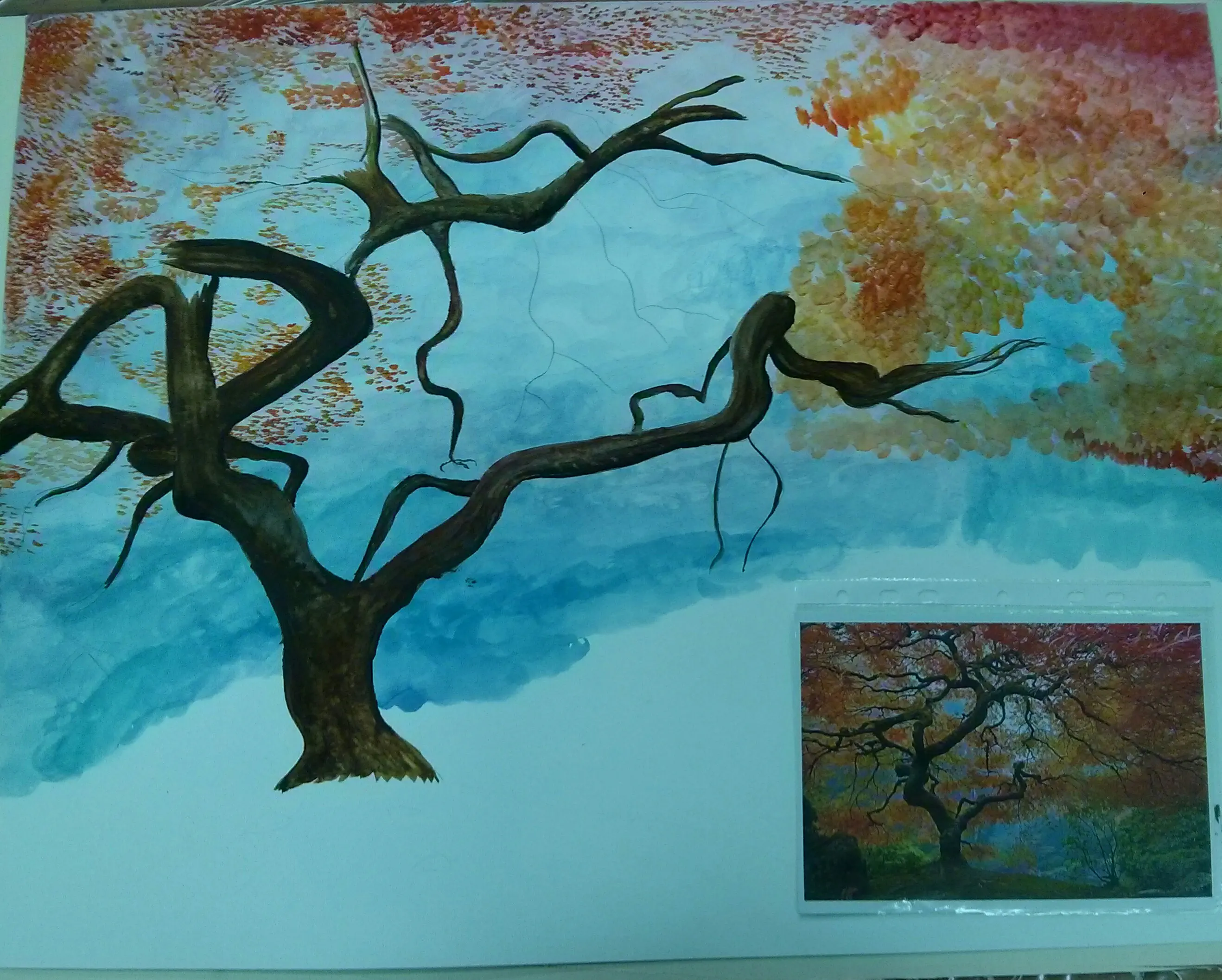 אז אני מציירת עץ אדיר צמרת, וניתן לראות את הרעיון הסופי בצילום שמונח על הציור.
