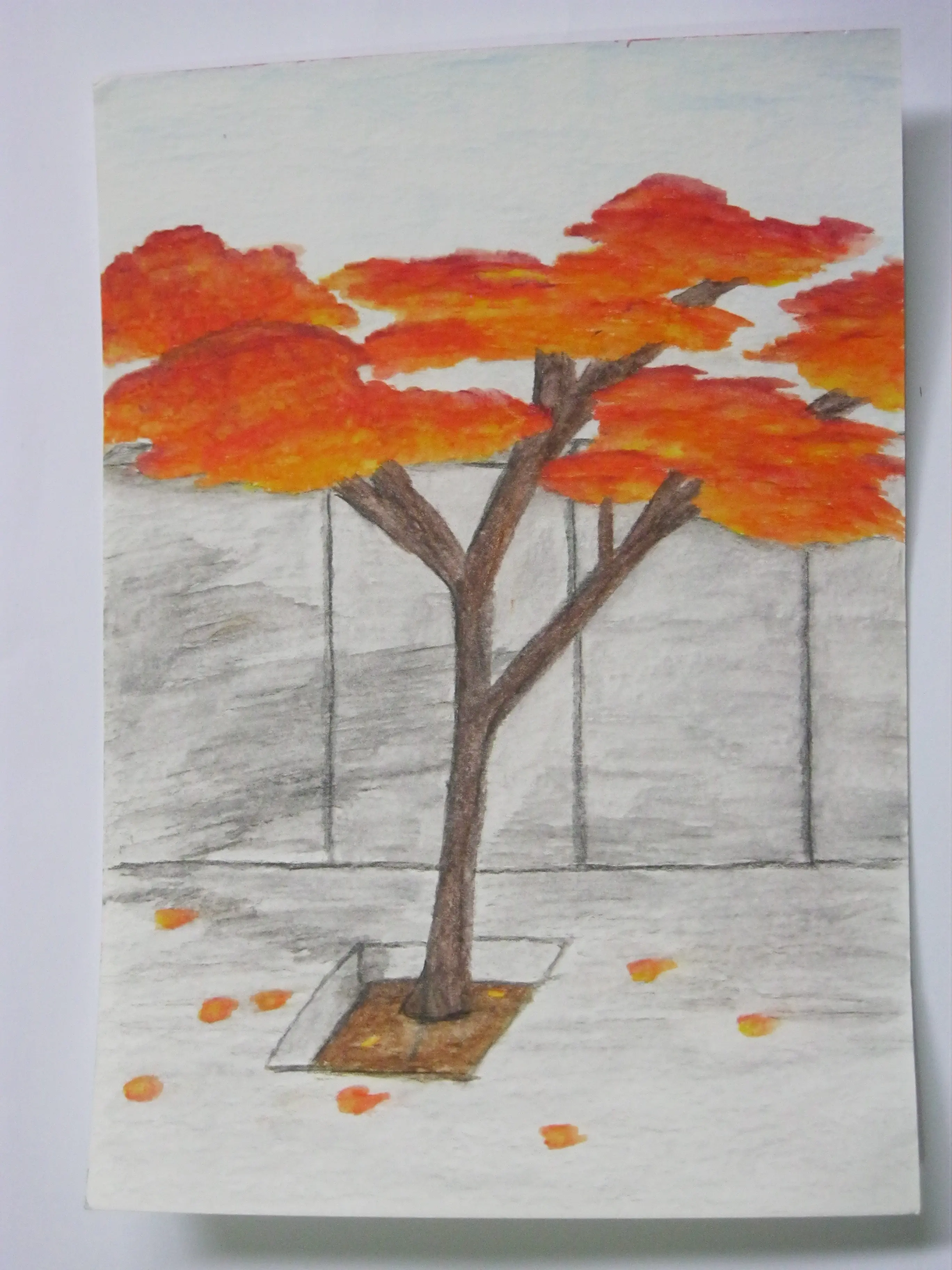 נסה לצייר ענפים עבים, שהולכים ומידקדקים לענפים דקים יותר ויותר, עם עלים. תוכל לעבות את הצמרת עם רקע של עלים צפופים צפופים.