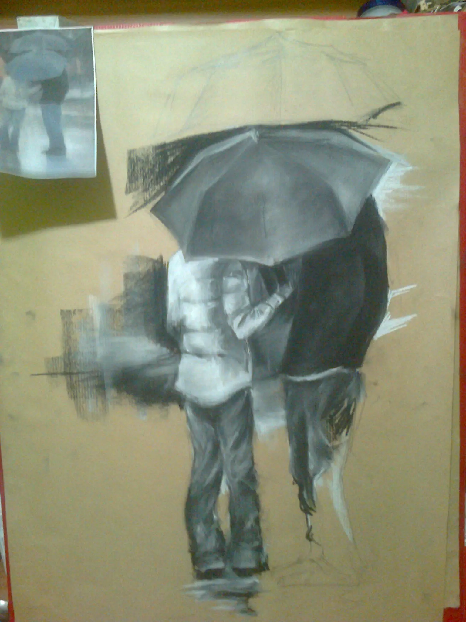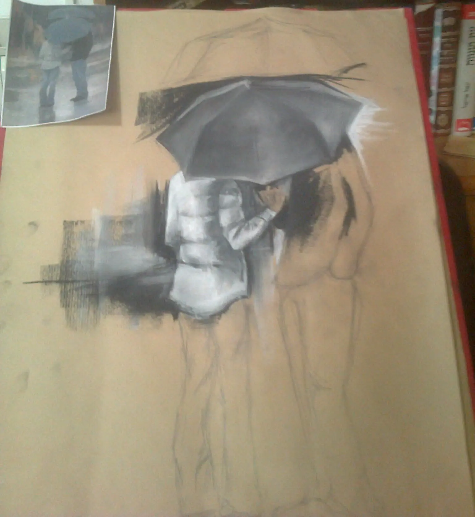 הדגש על כך שהעבודה אמורה להיות בעלת רקע מסוג שונה..הוא צריך להיות צבעעוני..אז במקרה כזה אני אשתמש בגירים או בפנדה..נראה ..אבל קודם שאהיה סגורה על מה אני עושה ...(: