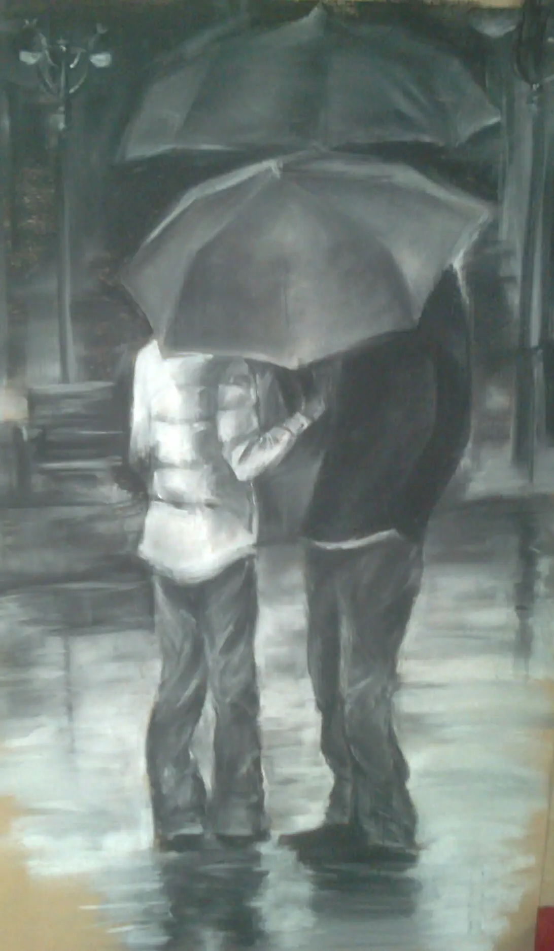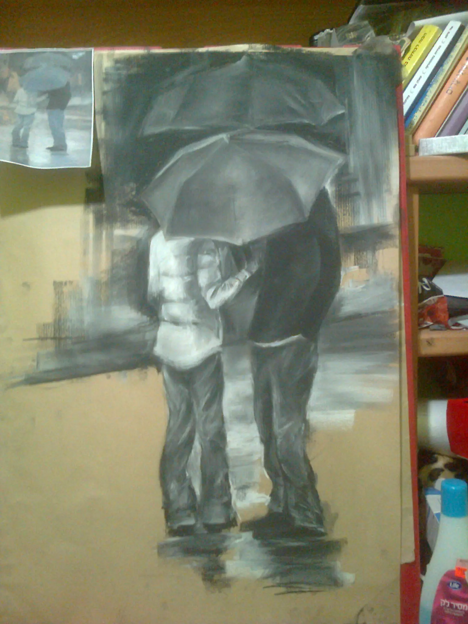 לגופו של ציור- יצא יפה מאוד בעיני, אך משיכות המכחול שעוטפות את המומנטים האלה ברקע ואת הילד בולטות מידי ומורידות אותו בכמה רמות. החלק המטושטש למטה יצא לך נפלא ממש. אולי שווה לטשטש ככה גם את החלק העליון