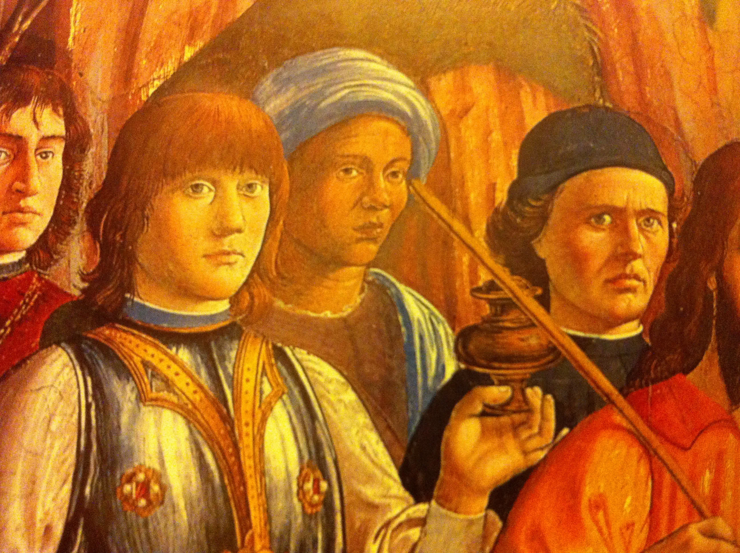 הנה למשל פיסונת קטנטנה מהציור ״קריעת ים סוף״ של מיכאלנג׳לו. תראי את שתי הדמויות- ההיא עם הכובע השחור וההיא עם השיער הארוך. איך השניה אפאטית למראה והראשונה מלאת הבעה. תתעמקי ותראי איך נעשה ההבדל