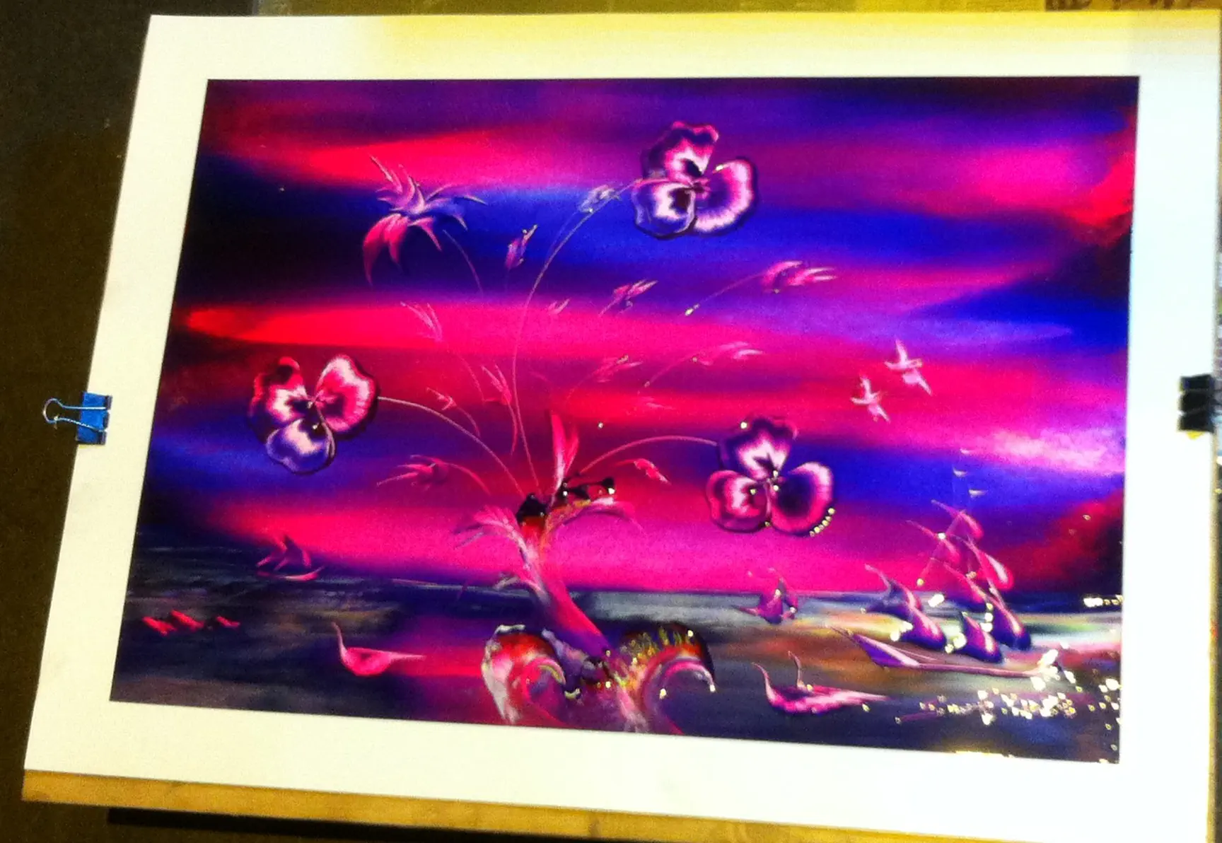 צבעה באקריליק,הדביקה מפית יפה עם ציור של פרח גדול,