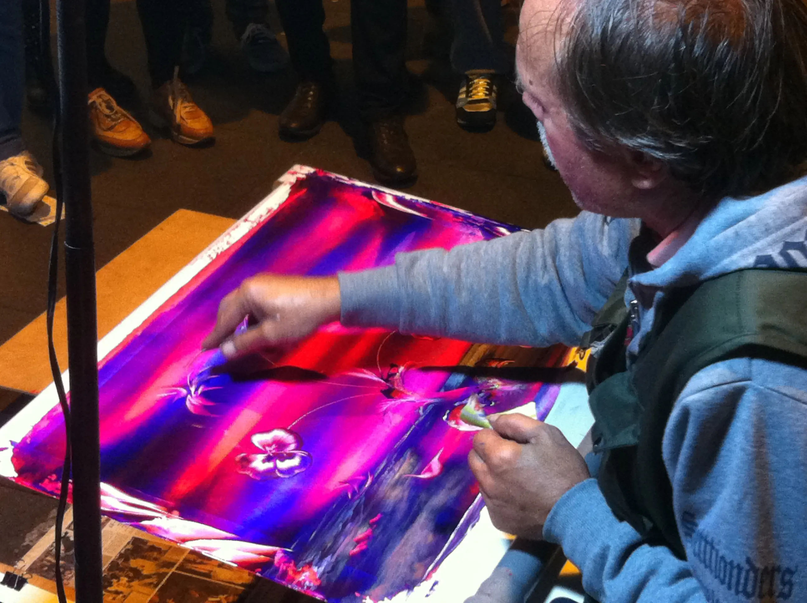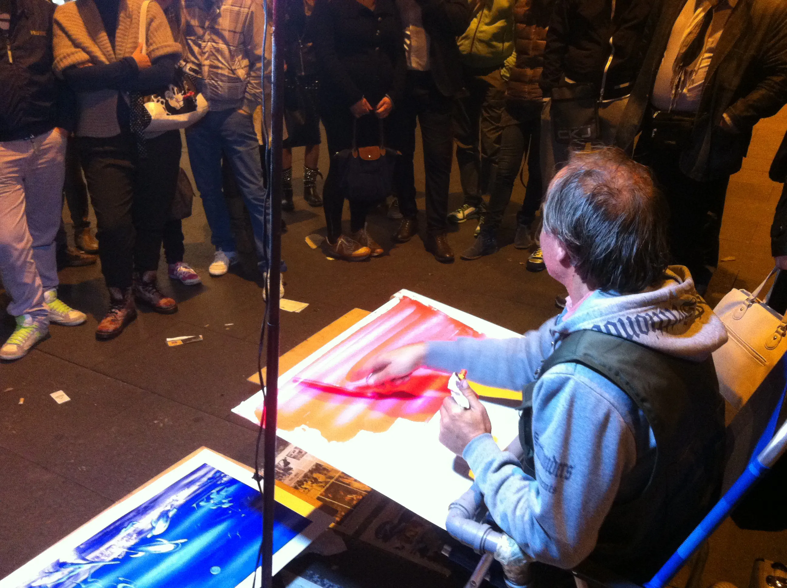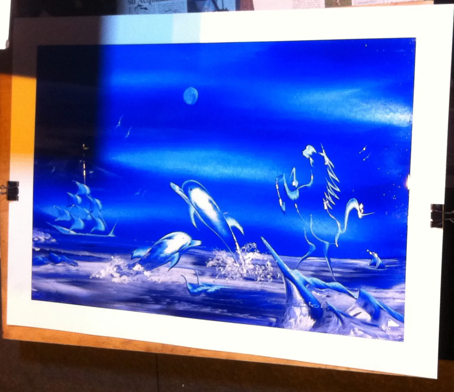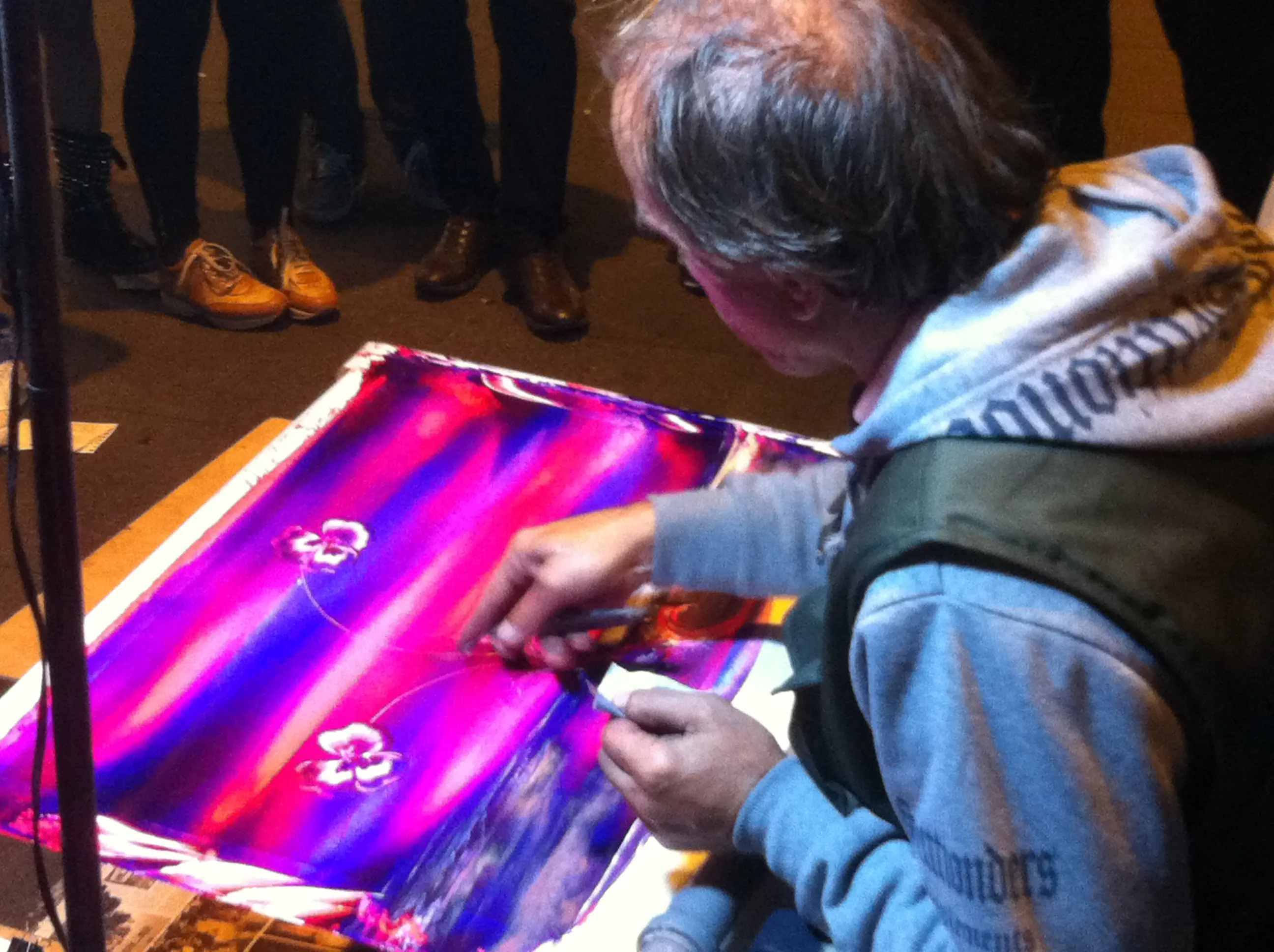 וכו׳ וכו׳ |חולם בהקיץ|)בלבה של התקהלות עצומה היה צייר שמצייר בצבע ושפכטל. ככל שהשכבה דקה יותר היא יותר בהירה. הוא שילב צבעים ומרח אותם למן גוון הרמוני יפהפה. למשל הים בתמונה כאן- שימו לב לצבעים בצד ימין.