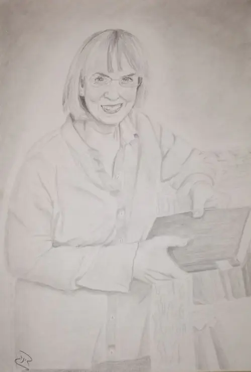 היד שמחזיקה את העיפרון יכולה להשתפר מבחינת תנוחת האחיזה: אנחנו רואים את הזרת והקמיצה, האמה שמעל העפרון, והאצבע מאחוריו. זו לא נראית לי תנוחה הגיונית\טבעית להשתמש בעיפרון.
