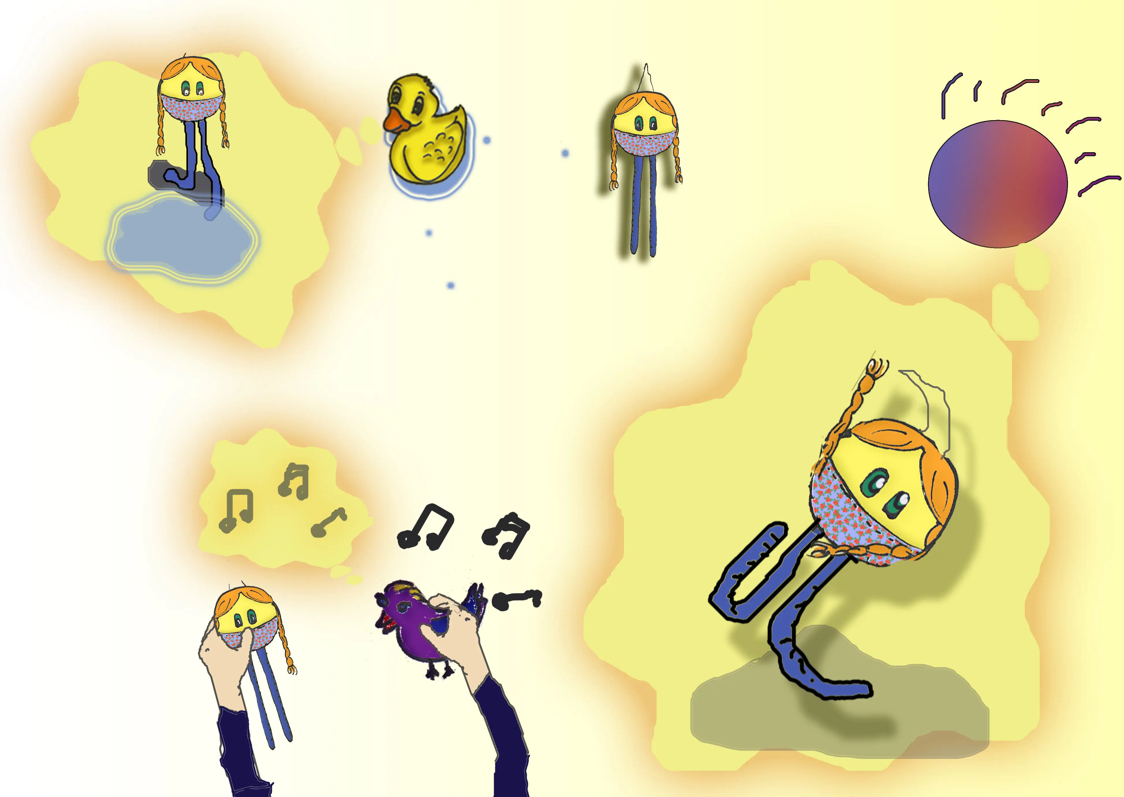 אני חושבת שאם רוצים לעלות רמה - צריך להצליל קצת את כל הפנים, הגוף. שלא יראו ת'צבע של הדף.