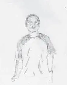 שציירה בעפרון וכעת בעזרת מכחול.