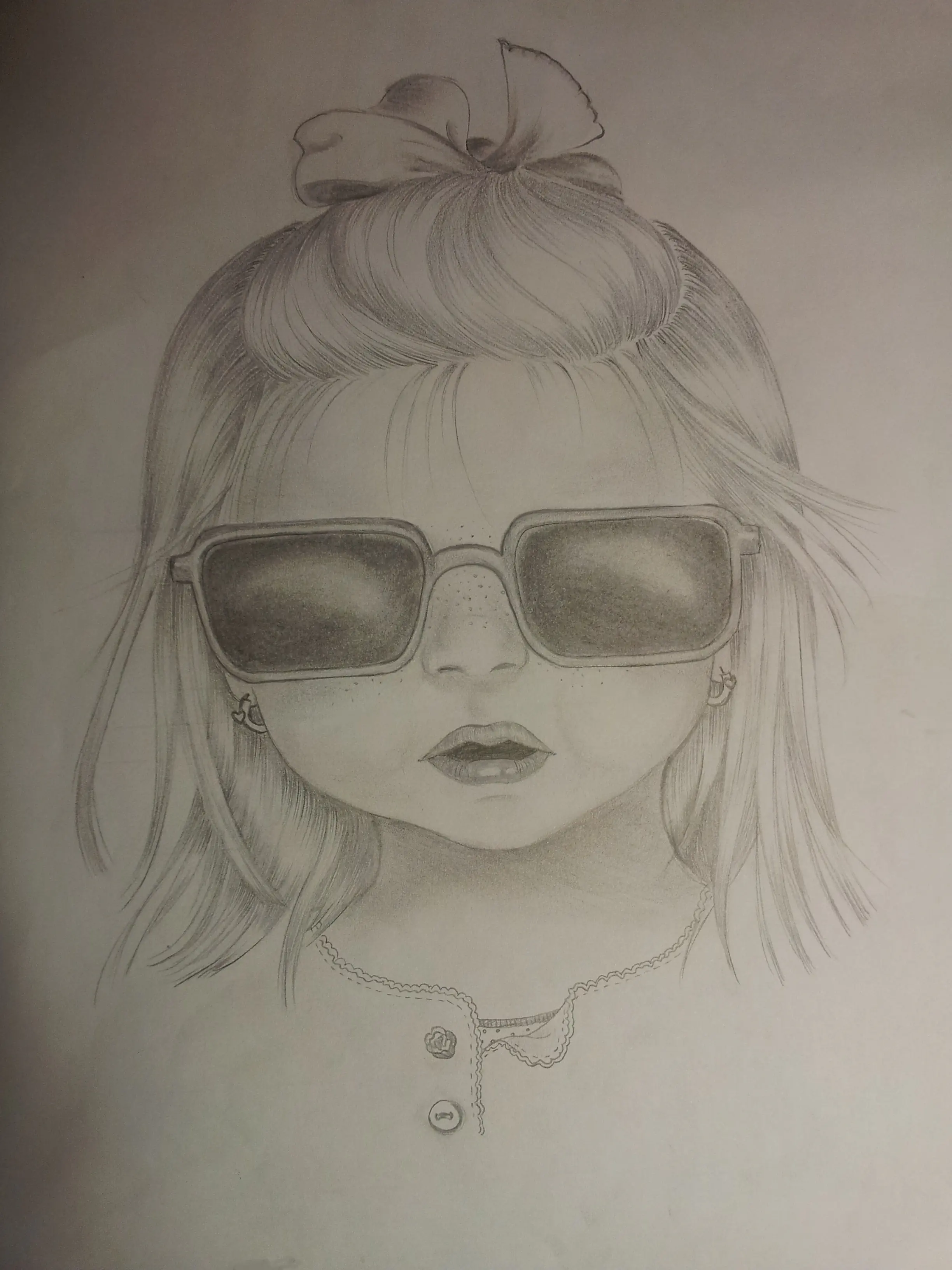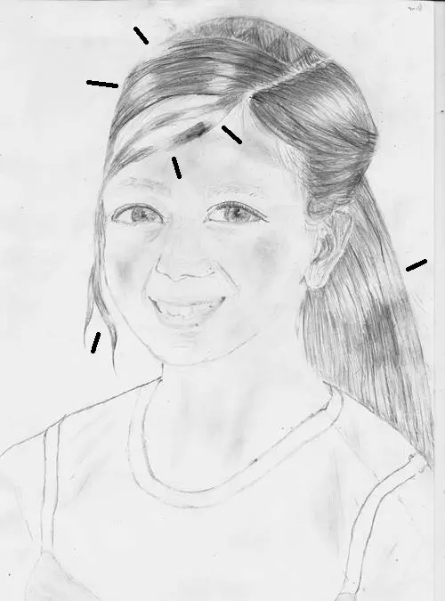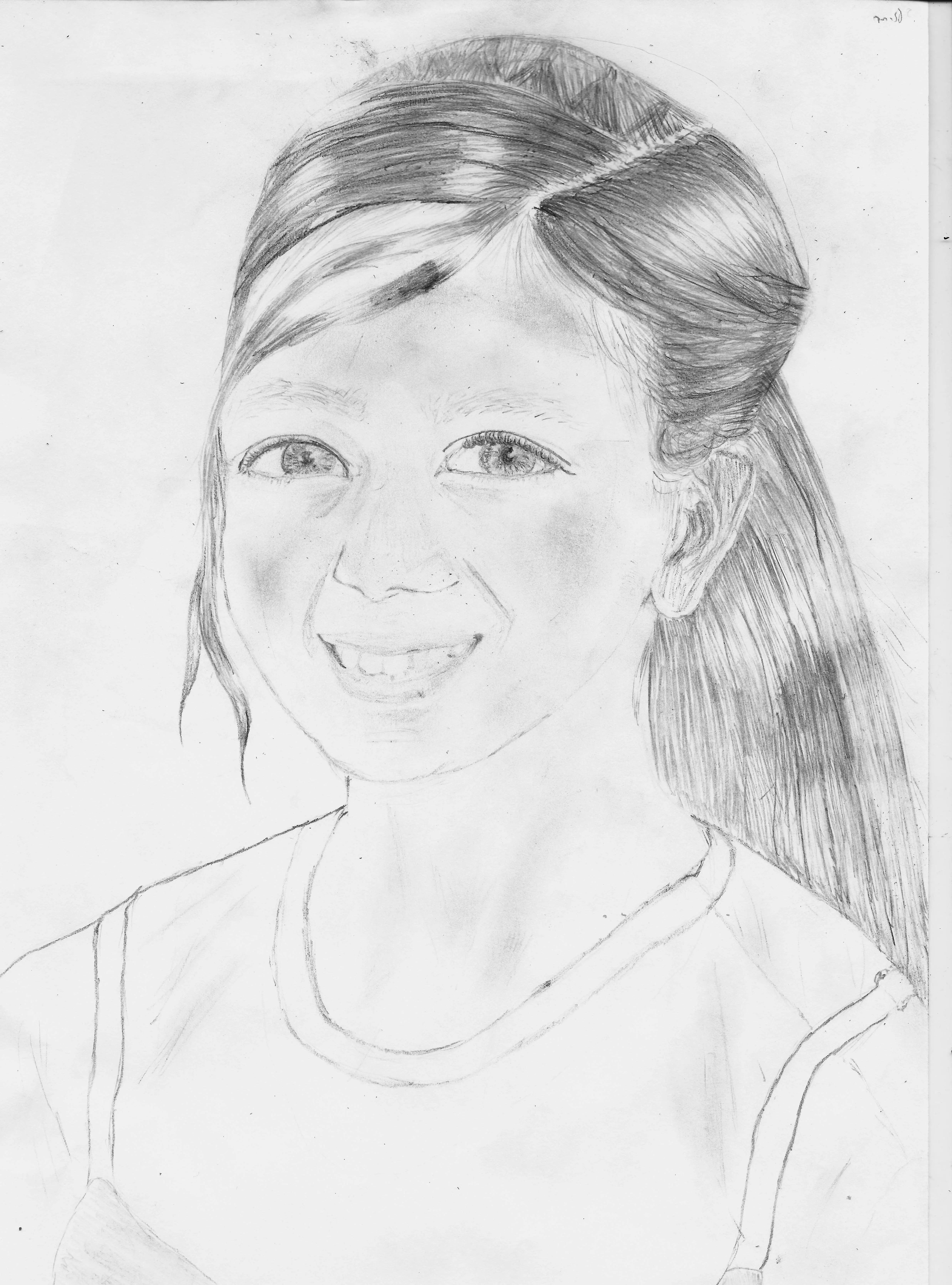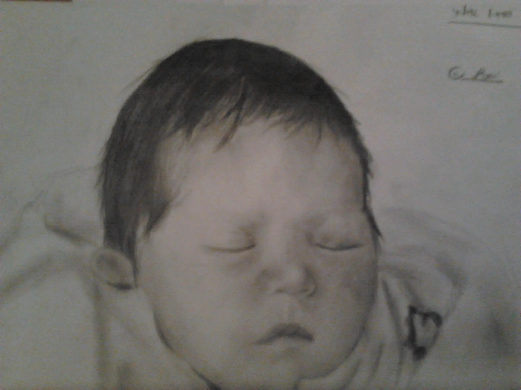 ככלל- ציור מהמם! ההצללות, מעולות, והפה ממש נראה מוחשי, אני הייתי מוסיפה לו ברק איפשהוא. השיער- רק וקטיפתי, כמו של תינוק, ממש. אך ניכר שלא השקעת בו מאמצים. ההצללות בחולצה מעולות...