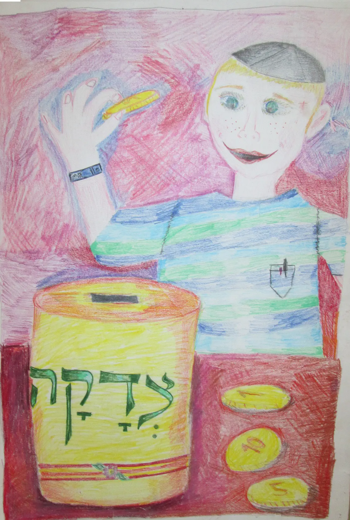 צבעתי את החולצה, את הפנים (לא כולל הכיפה), את הרקע נדמה לי..ובטח גם קצת מהקופת צדקה. לא זוכרת.