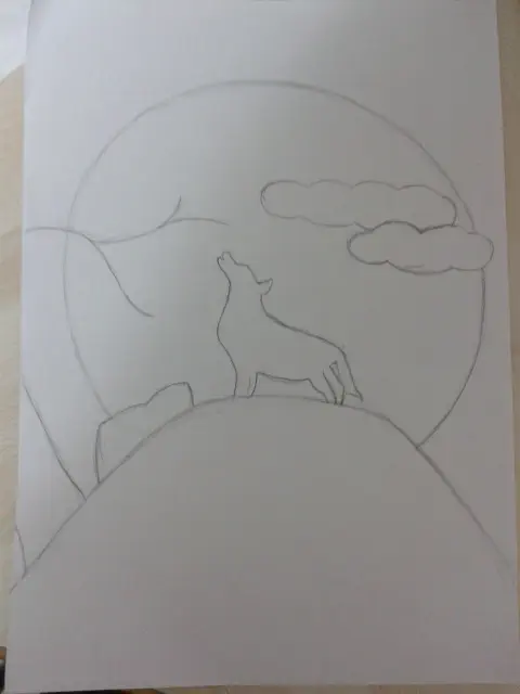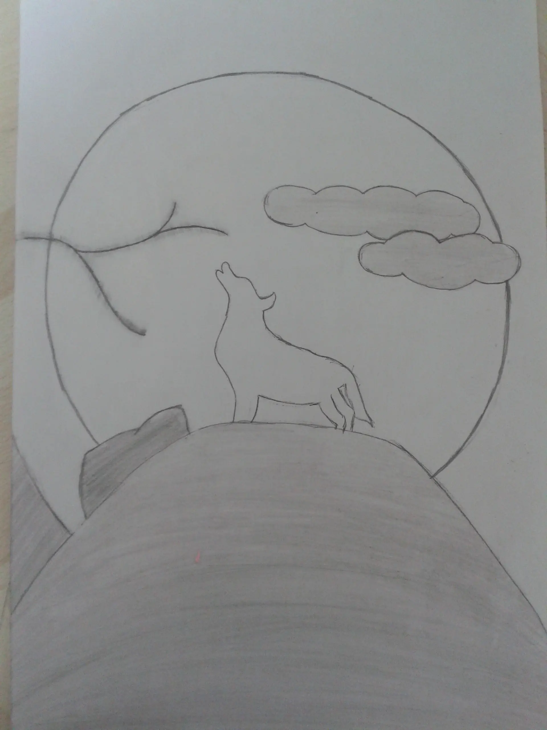 ואז כמה אופציות- או שהייתי צובע את ההר והזאב בשחור, או שהייתי צובע רק את הזאב בשחור ואת ההר באפור, או שהייתי צובע רק את ההר באפור ומשאיר את הזאב כפי שהוא, כאילו הוא שקוף ונבלע בירח.