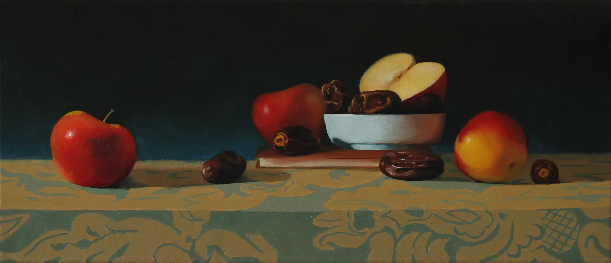 תפוחים ותמרים - ציור שמן על בדroniyoffe
