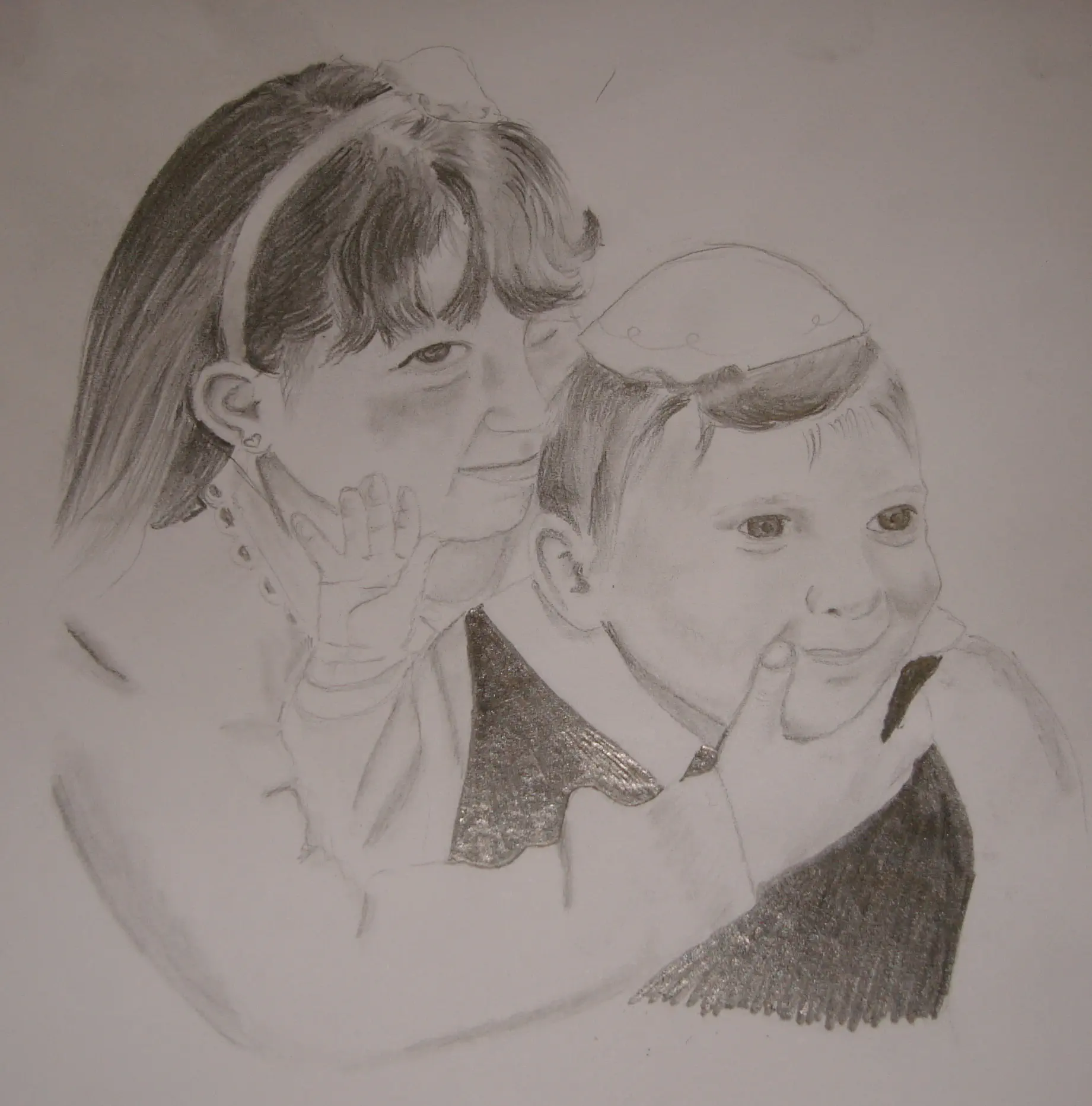 סה"כ הציור שלה אולי באמת דומה יותר, בוגר יותר,ולי זה יצא באמת מאוד ילדותי.. ההבעה בפנים לא דומה ממש באף אחד מהם. היא הזעיפה לי מאוד את הגבות..אבל אני הרמתי אותם מידי..