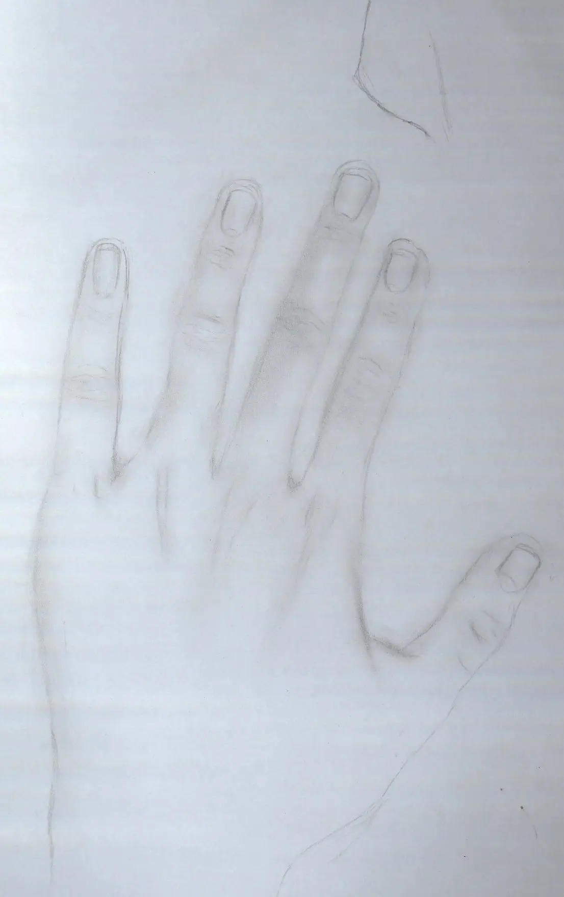 - הקווים שלך עדינים יותר, ואת פחות יורדת לפרטים ריאליסטיים. קחי לדוגמא את האוזן. תראי איך שתיכן ציירתן אותה: היא ציירה אותה לפרטיה, בעוד שאת הסתפקת במספר קווי מתאר (אאל"ט- נתתי לך את העניין לשידרוג, בש"ב. קדימה לעבודה.)