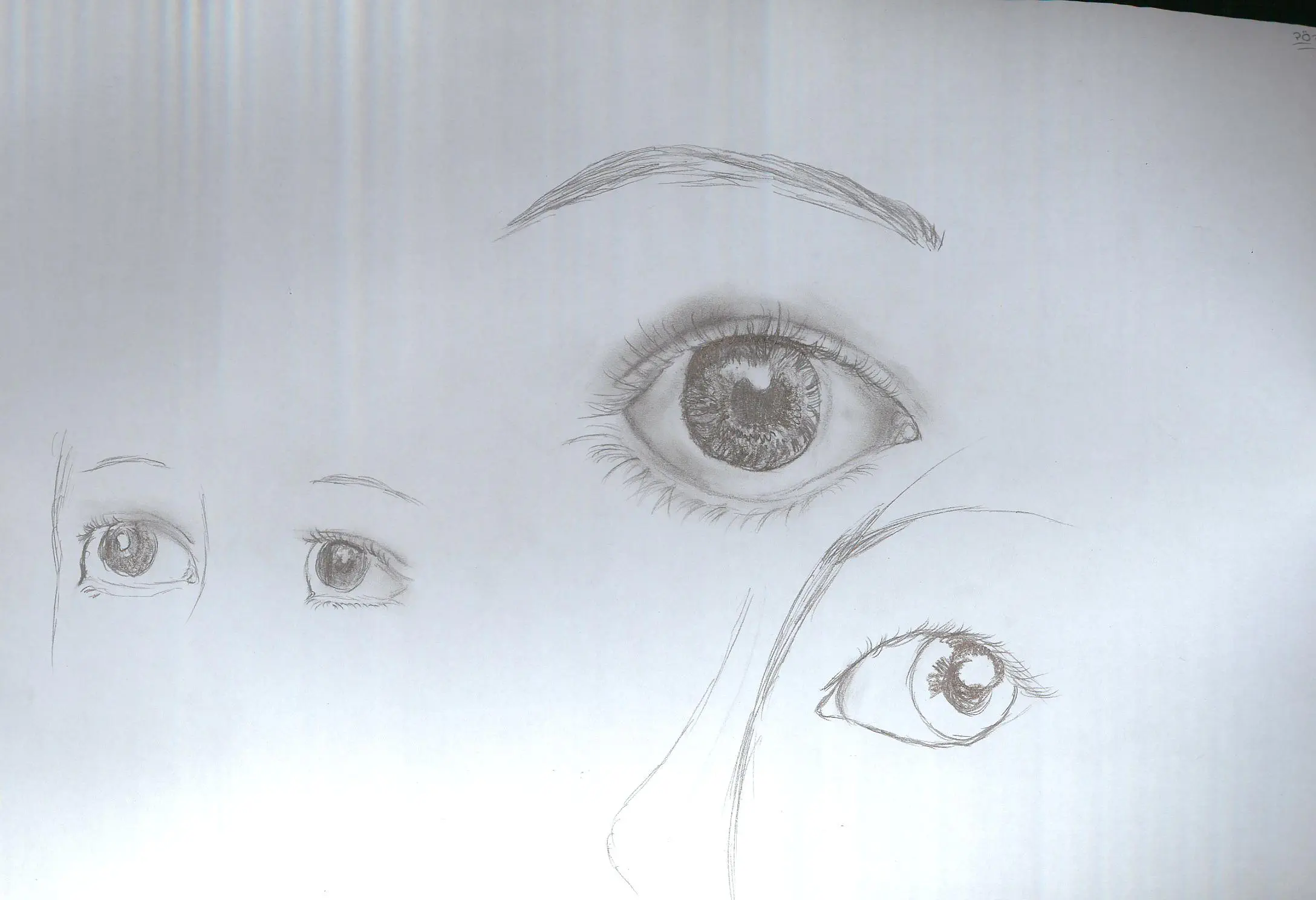 בנוסף- ציירת נכון את העין השמאלית חתוכה. אך העין הימנית לא אמורה להיות חתוכה באותה הצורה. אמורים לראות את הקצה שלה. שוב- תתבונני בתמונה/בעצמך במראה ותראי למה התכוונתי.