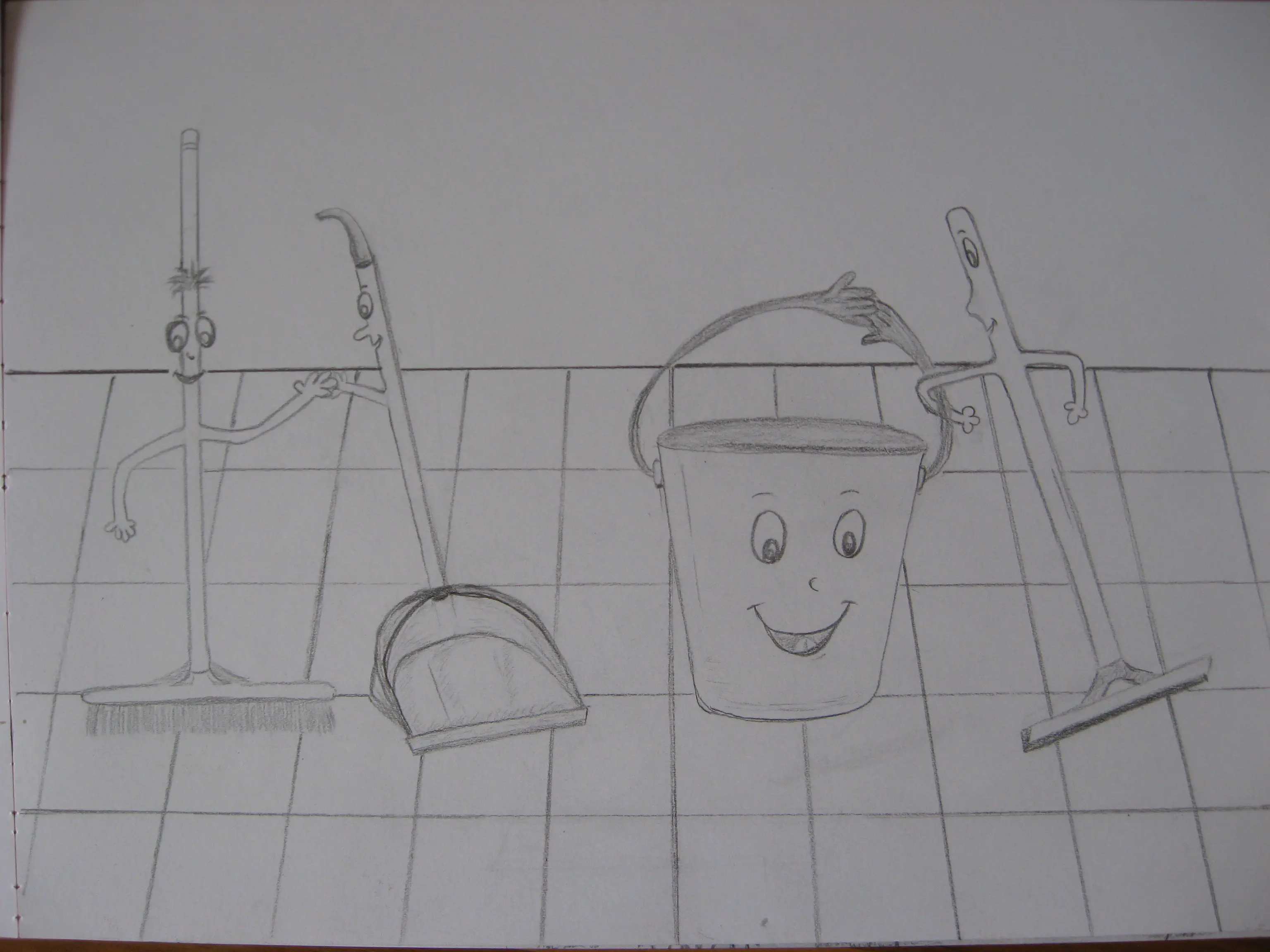 אני הייתי מציירת את הקווים של הריצפה באלכסון , כדי שיתן תחושת עומק וייראה יותר אמין ..