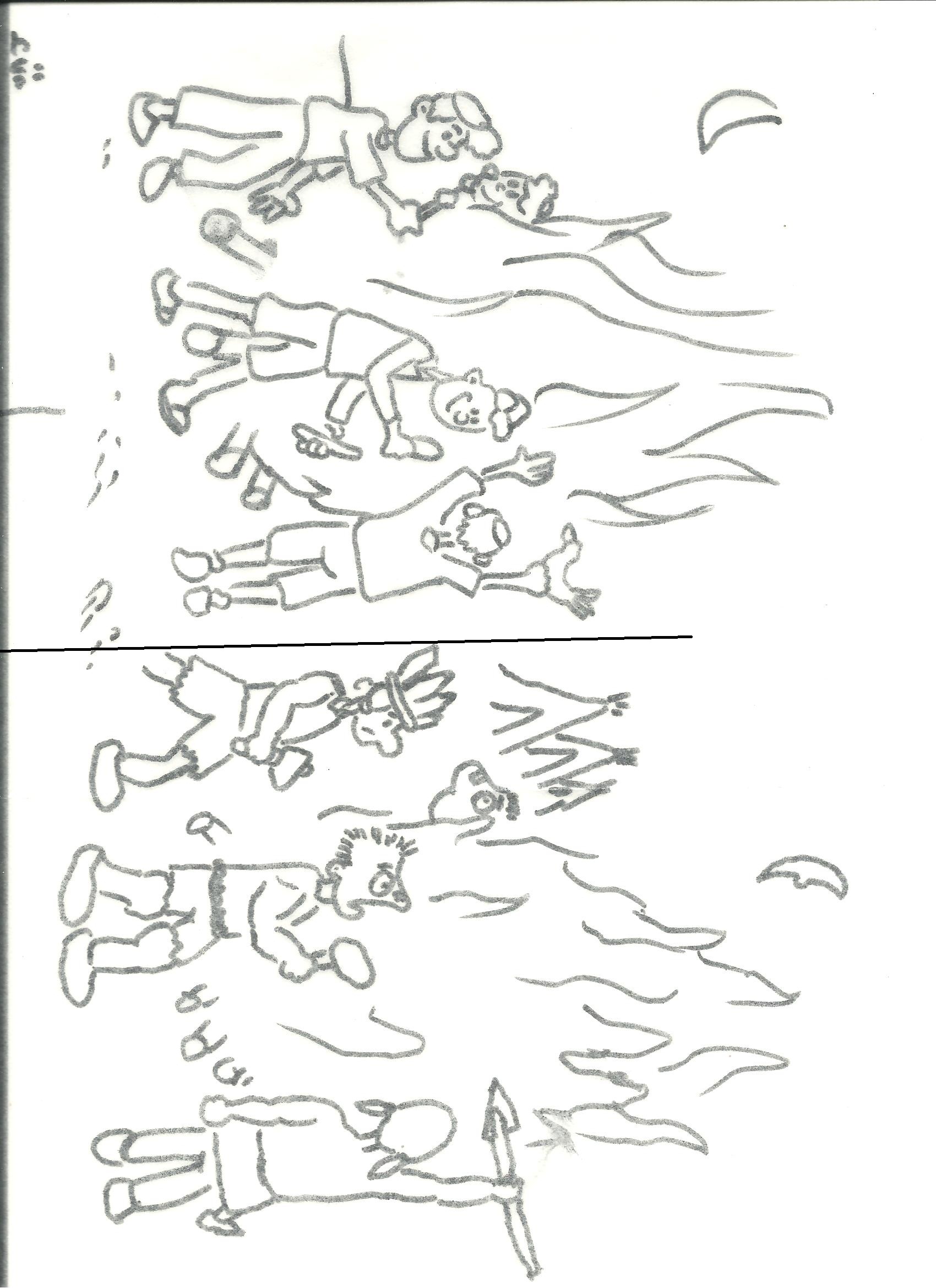 בנוי טוב. הצעה: הקוים צריכים להיות בולטים והחלטיים יותר, ז"א ישרים ואחידים כי זה נראה כמו סגנון מסוים של קריקטורה שאמורה לדעתי להיות בנויה מקוים נקיים. בהצלחה!
