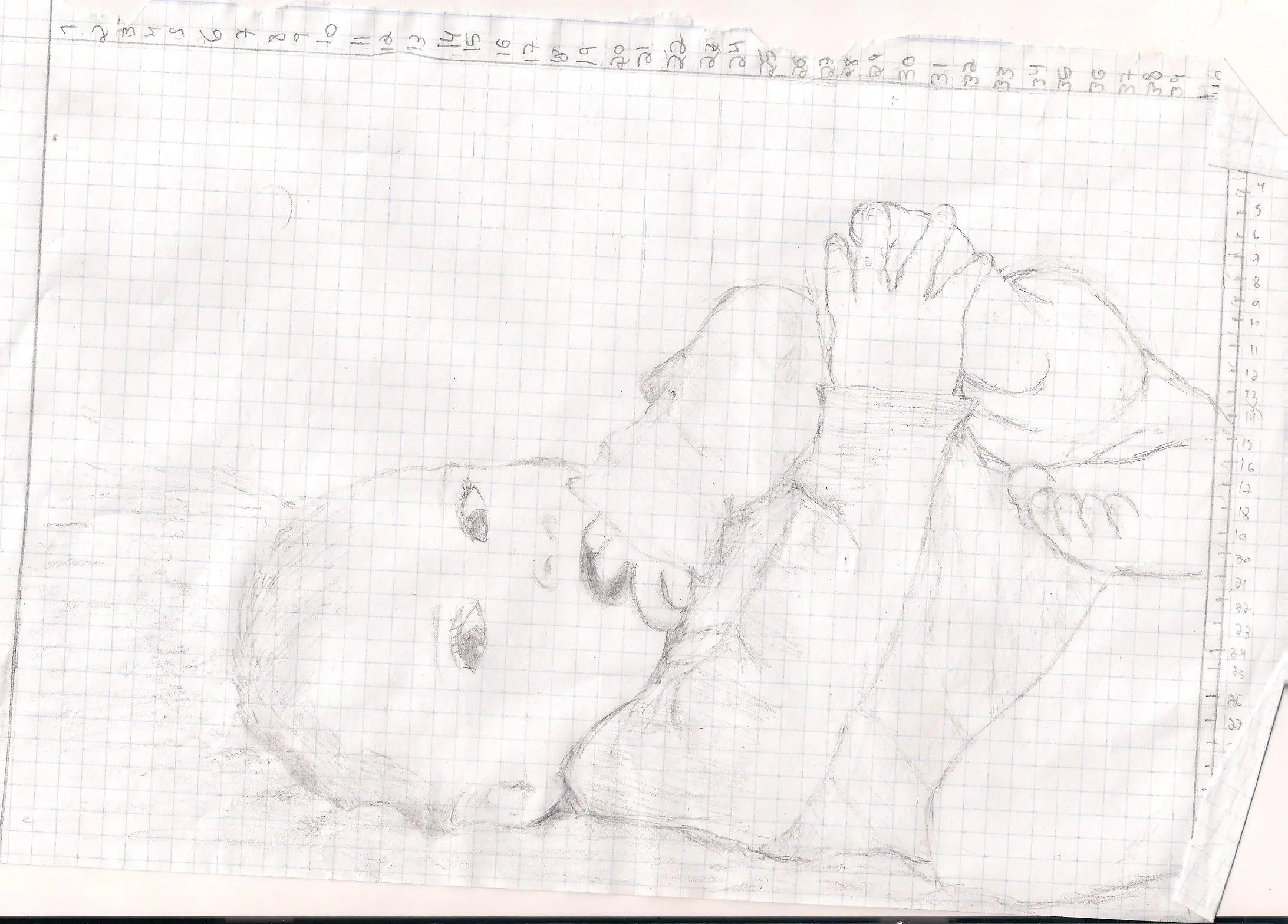 כמה חבל שהציור מכוסה במשבצות. בעקרון כדאי לצייר אותן ממש חלש, ובמהלך הציור להצליל ולמרוח אותן, עד שהן נעלמות. כך לא תאלצ/י למחוק אותן ולהשחית את הציור (מנסיון עגום שלי...)