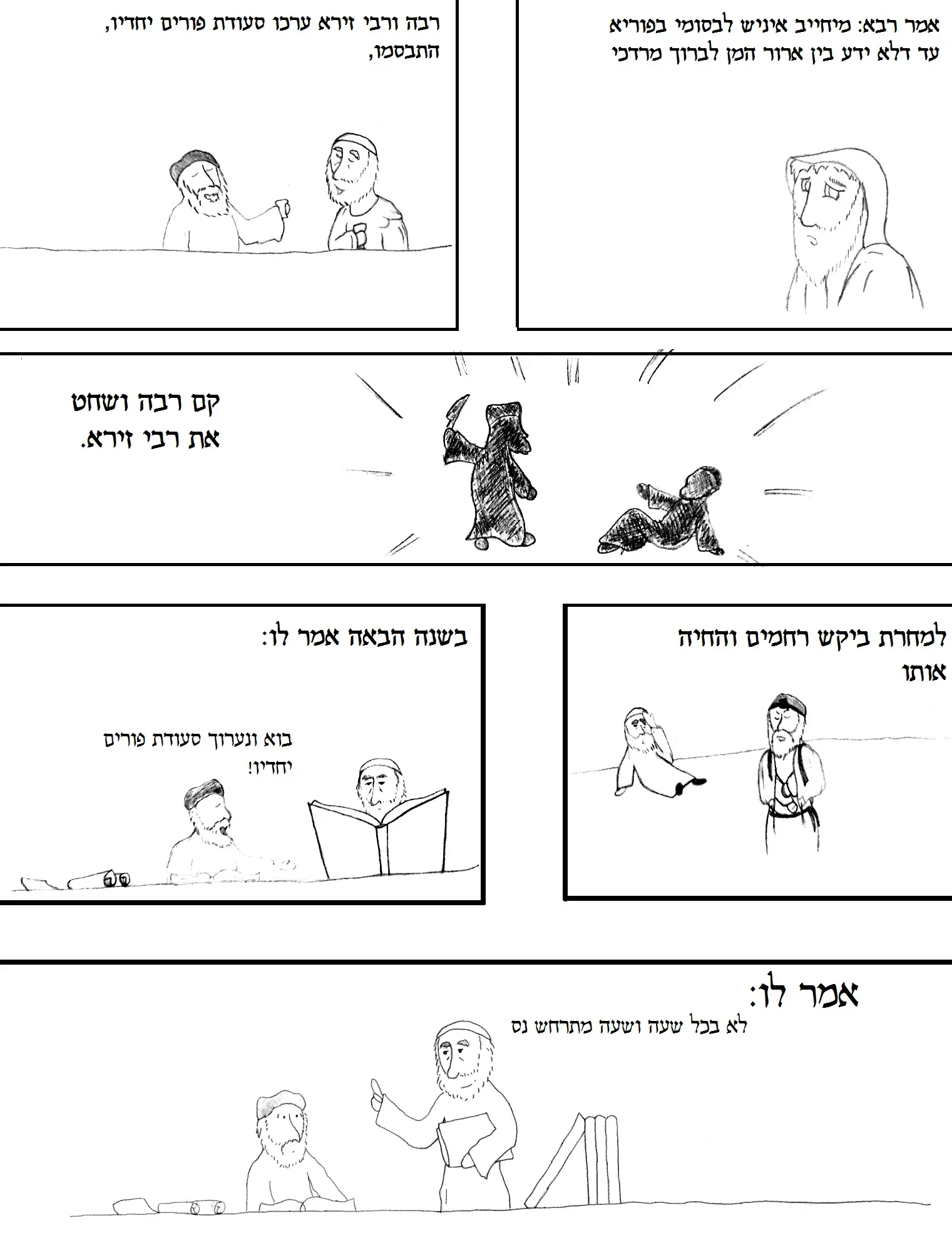 המקור הוא במגילה ז, ב. את התרגום העתקתי מתוך הספר "מוזמנים לחגים" של ישיבת סוסיא.