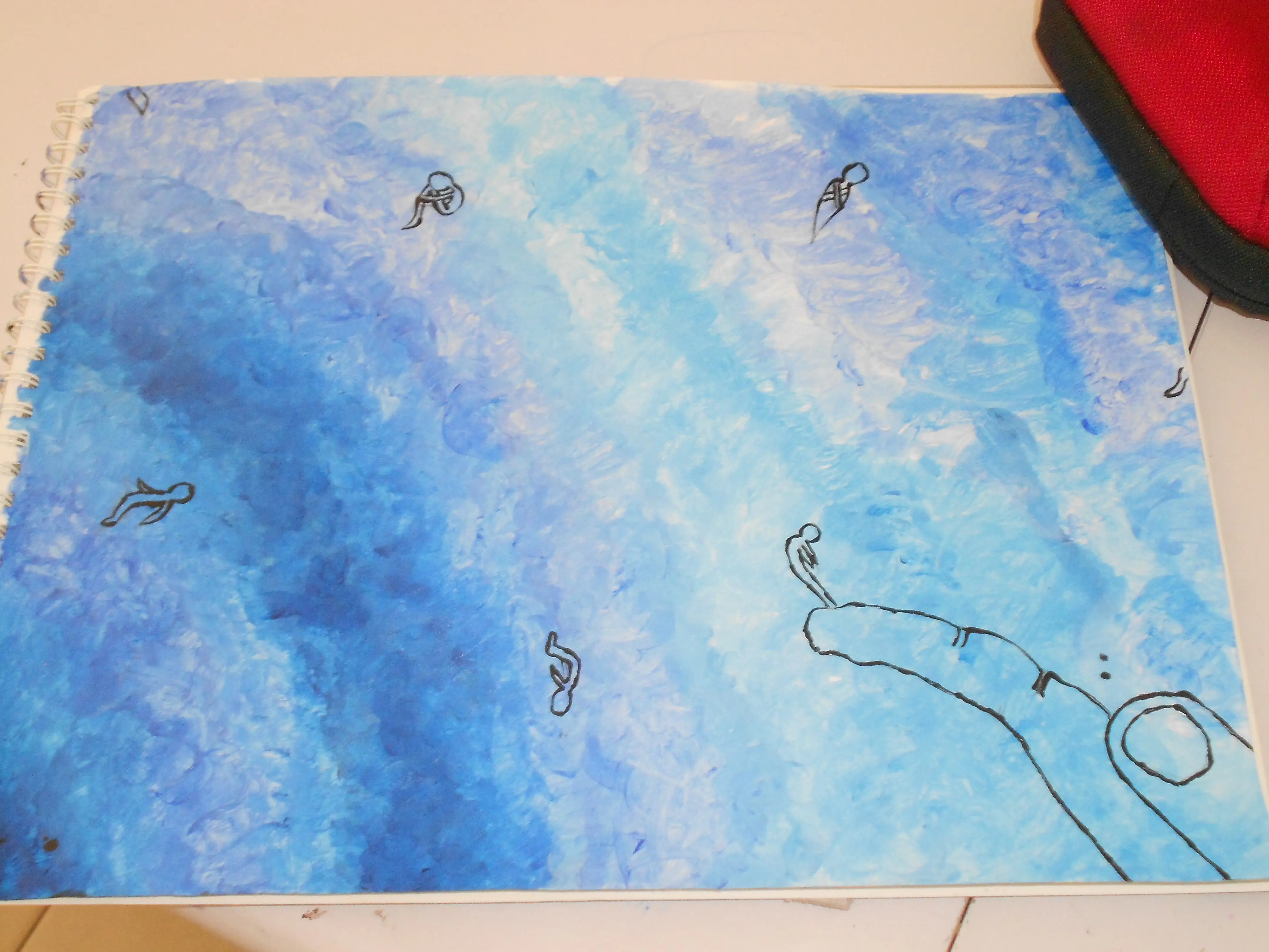 אני לא יודעת איך להמשיך. לא חשבתי על שום דבר מסוים כשציירתי את זה. אבל שמעתי בלופים את השיר בראשית, של אסף אמורסקי.