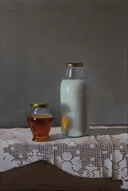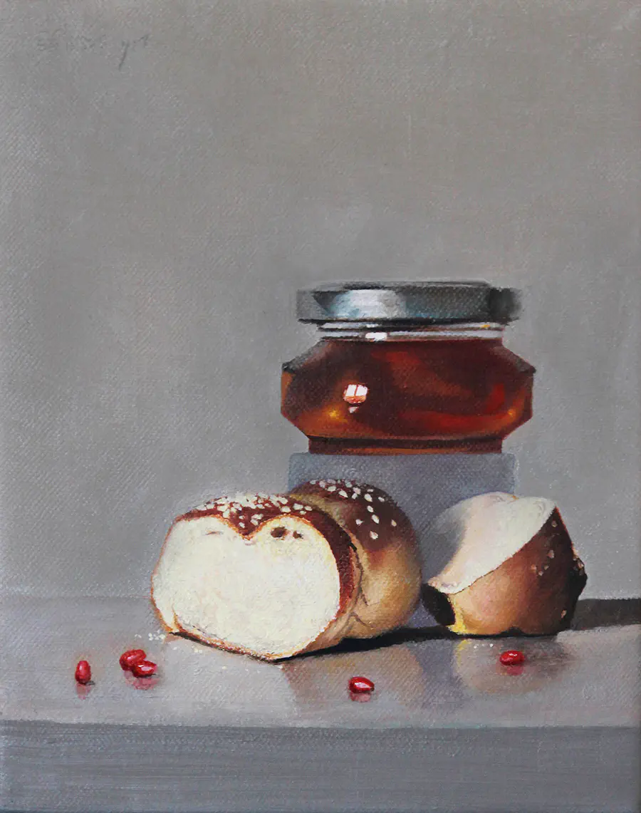 חלה ודבש - ציור שמן על בד - טבע דומםroniyoffe