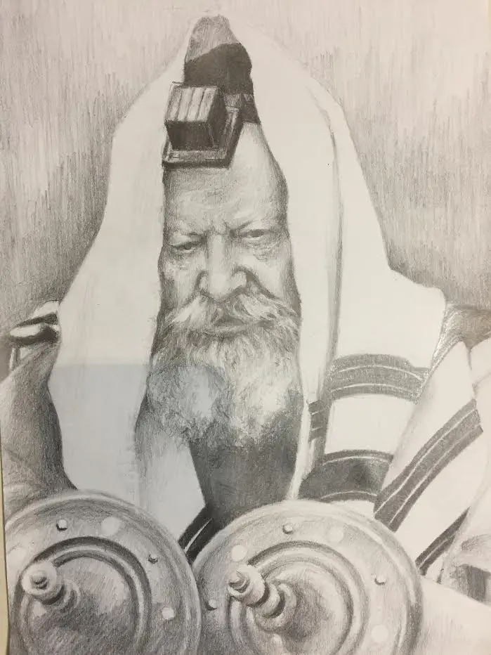 כמה הערות, הרקע, עמודי הספר תורה, החולצה הכהה מתחת לזקן, הרקע בצדדים... לא גמורים ועשוים בקווים ברורים. הניגוד ביניהם לבין מה שעניין אותך באמת די בולט. הפנים והעבודה שם הרבה יותר טובה אולי בגלל שעניין אותך יותר.