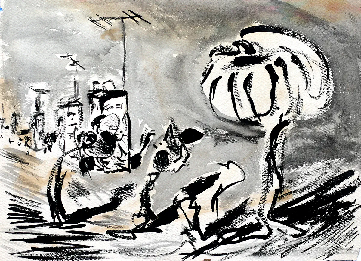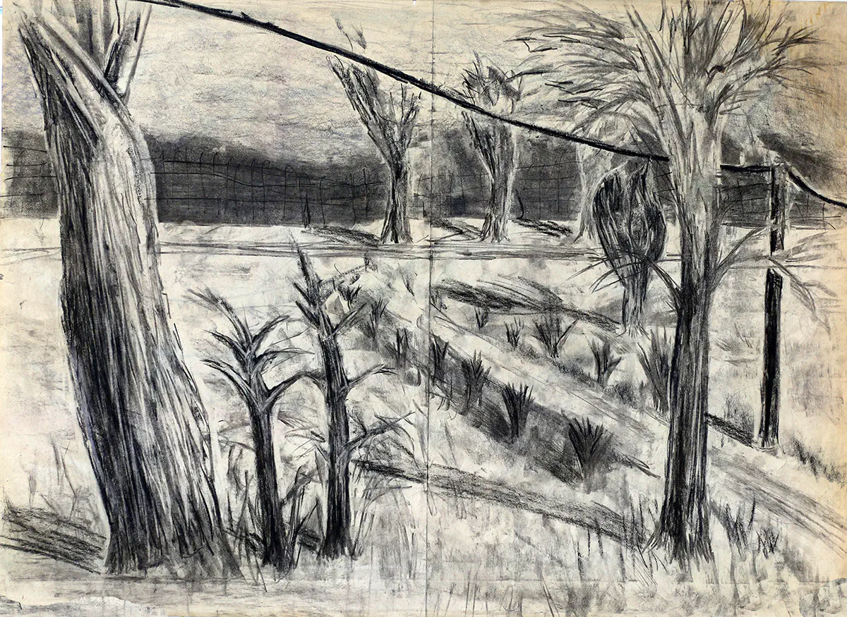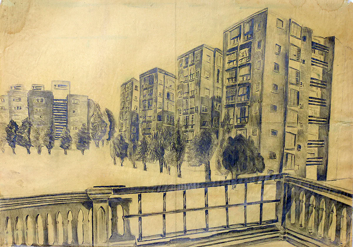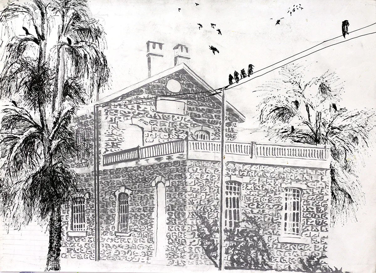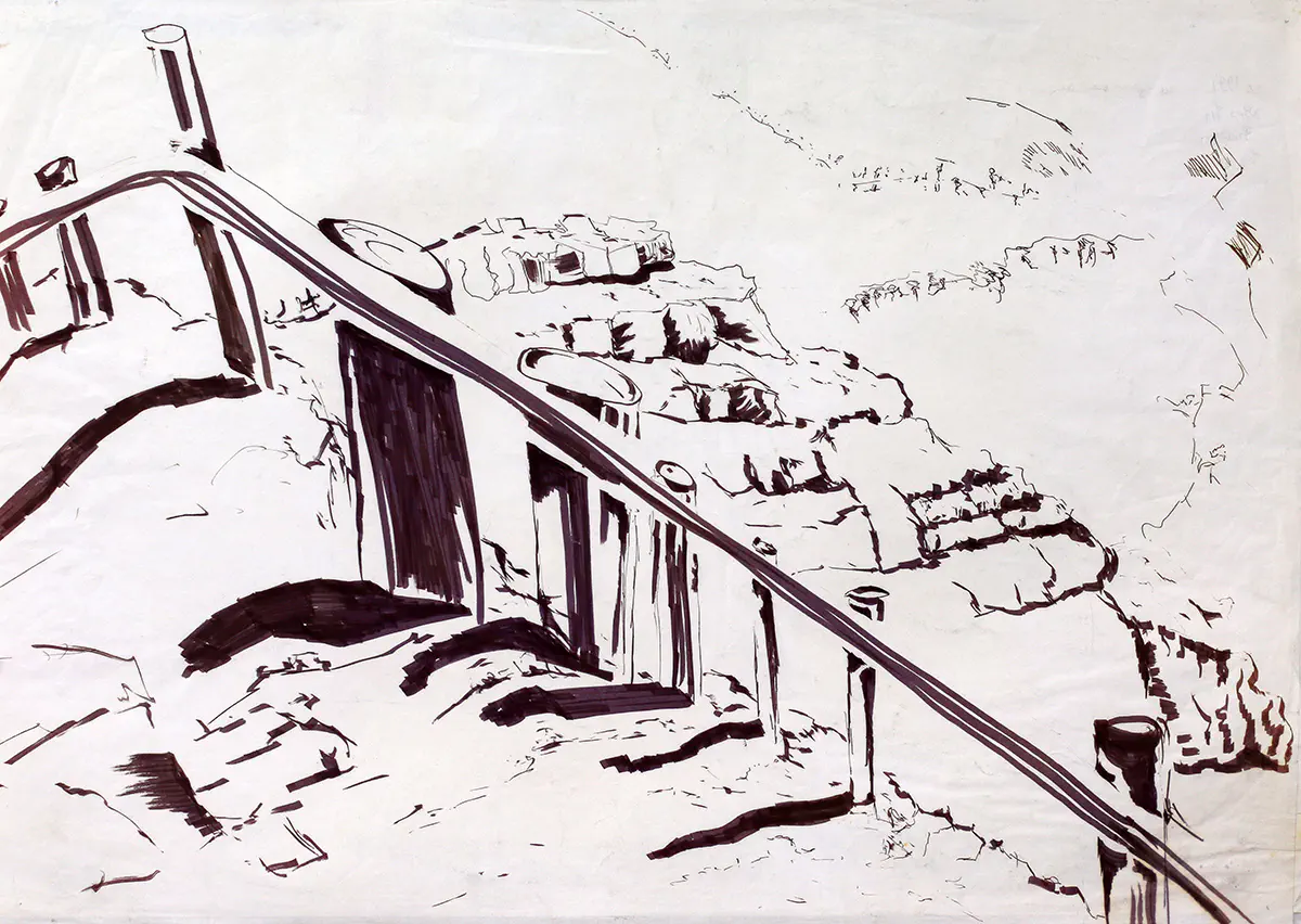 רישום נוף בעפרון דיו צבעי מים רישומי נוף ישראלי רפי פרץ
