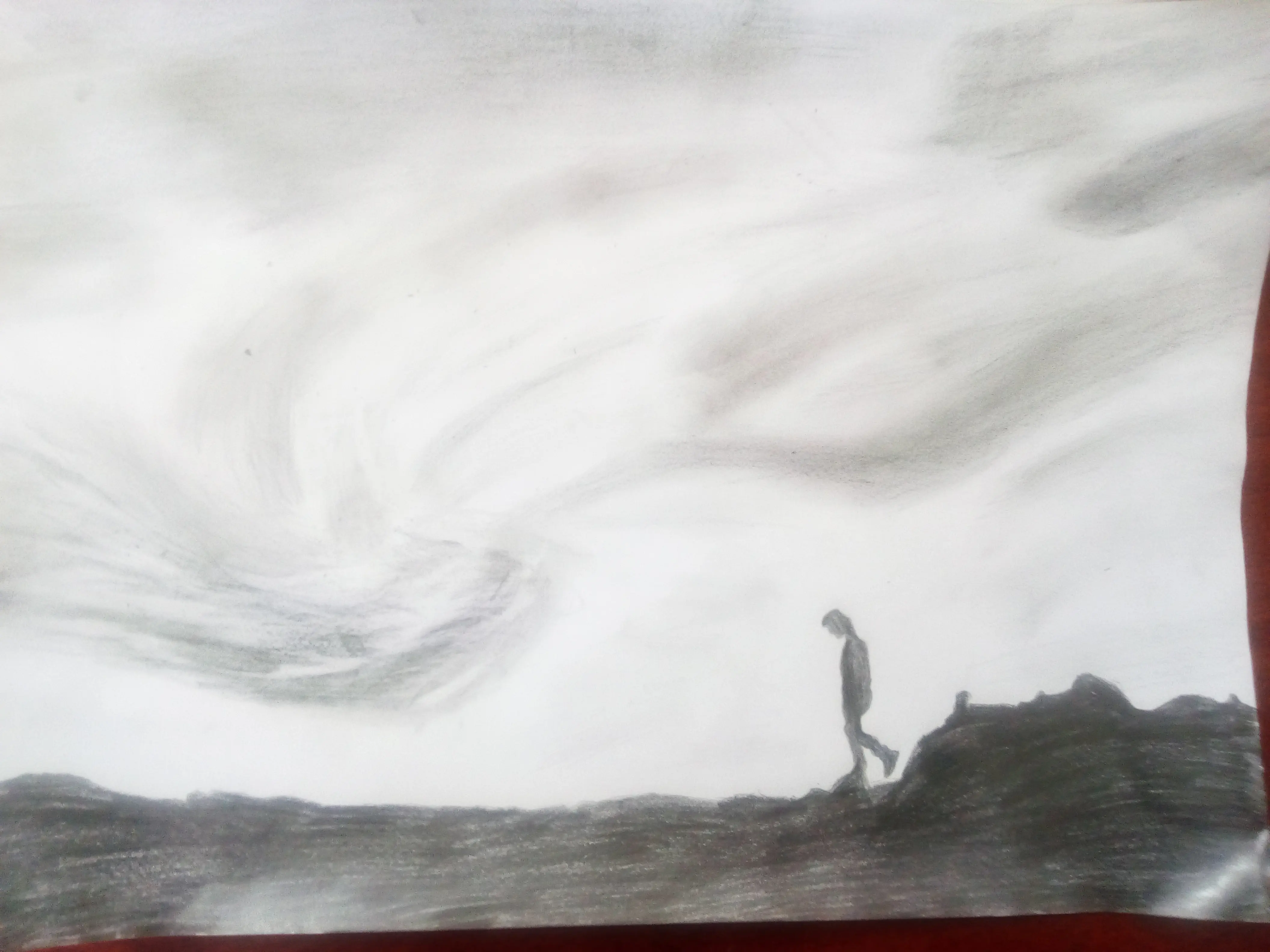 סולם מוצב ארצה (אפקט האבן והשמיים מאוד חזק,השמיים מול הסלע שציירת.מדהים.לדעתי כדאי למצוא משהו שנוגע בשניהם).