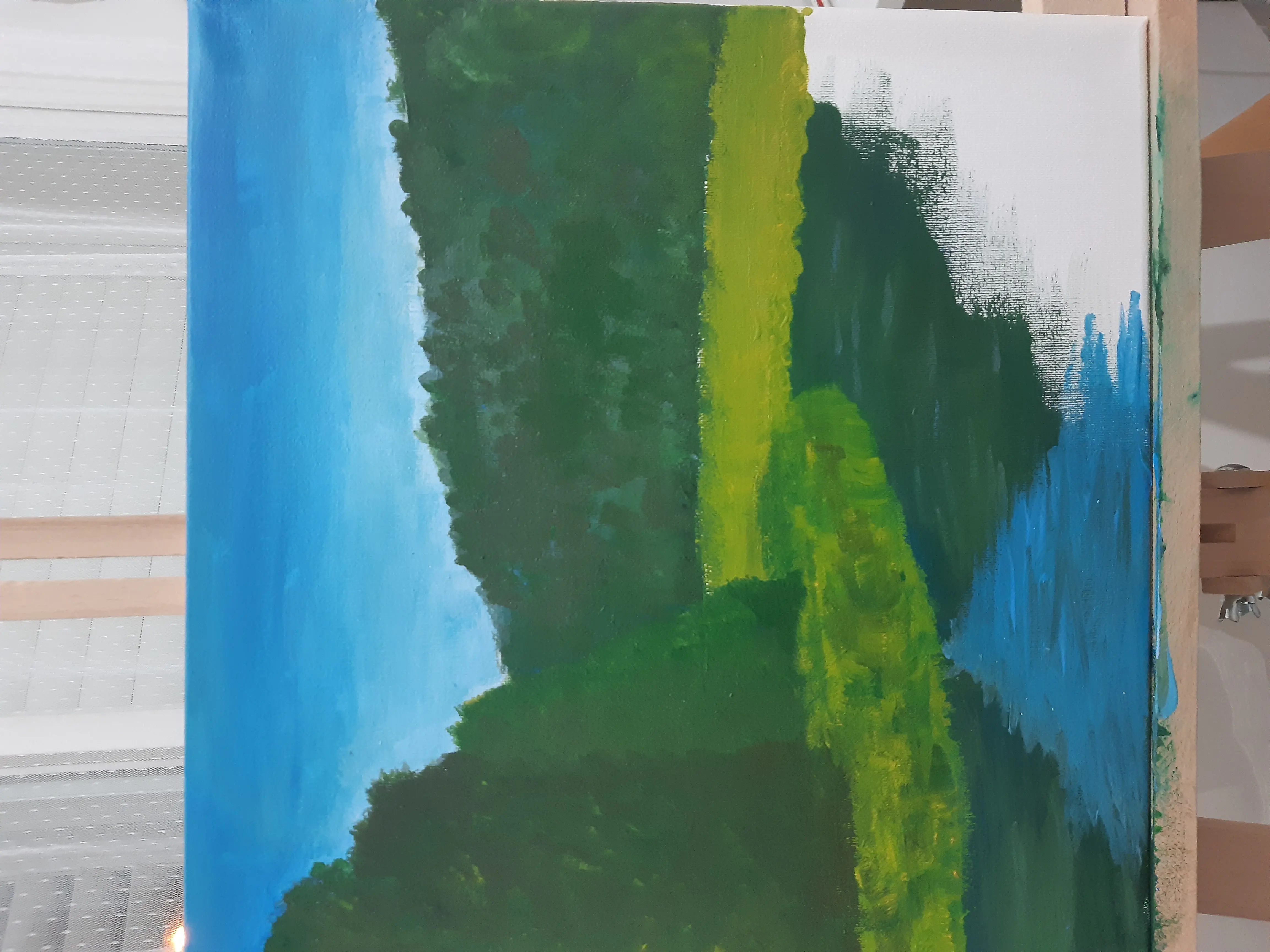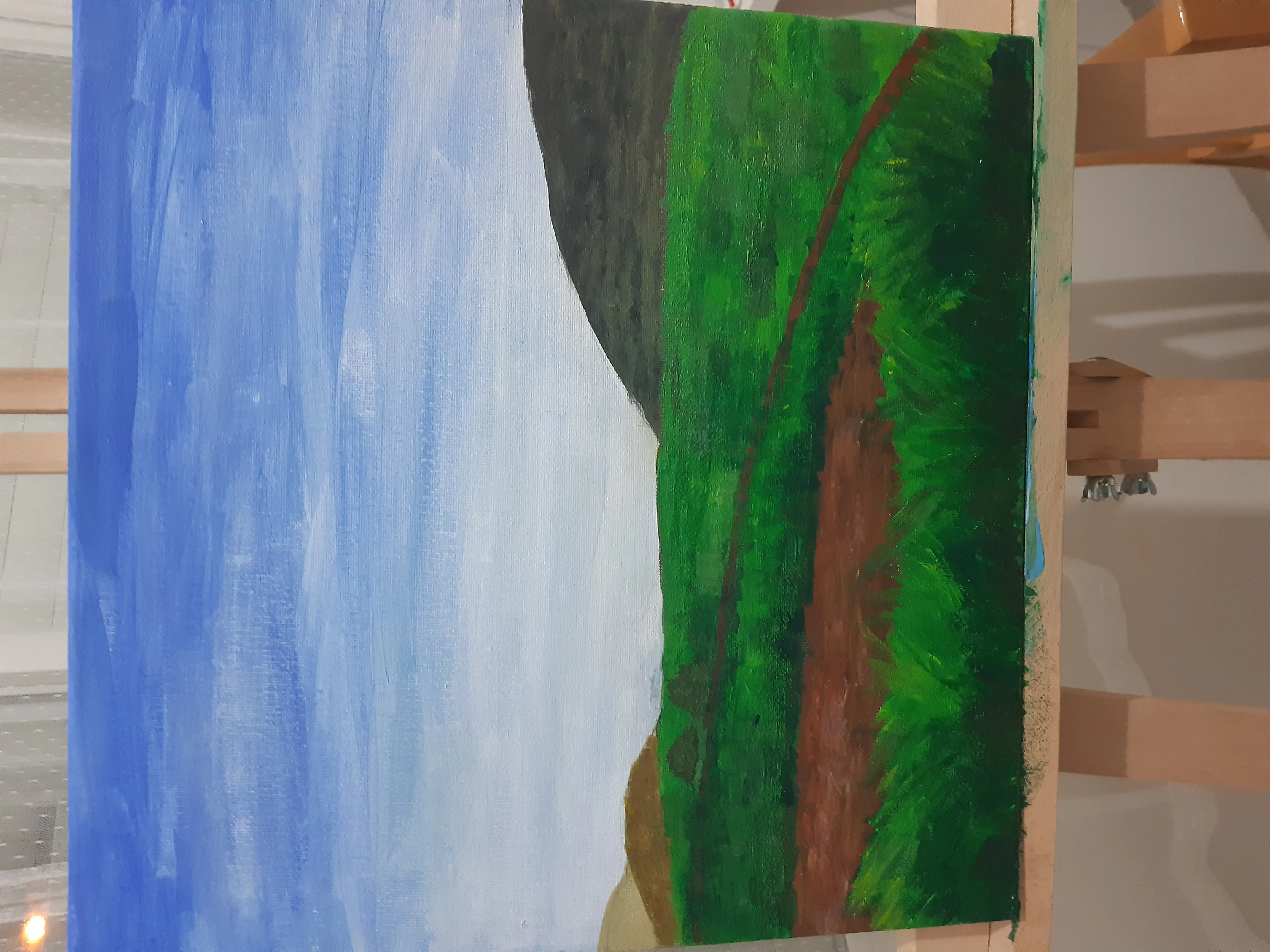 ובשני להוסיף גוונים לדשא ובחלק הקרוב בגבעה ברקע.