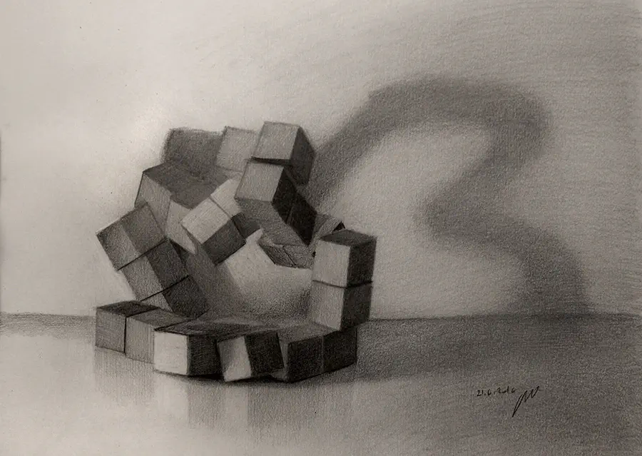 שנאתי תרגילים ברישום, שנאתי לצייר קוביות... וככה גם נראו תוצאות התרגילים שלי.