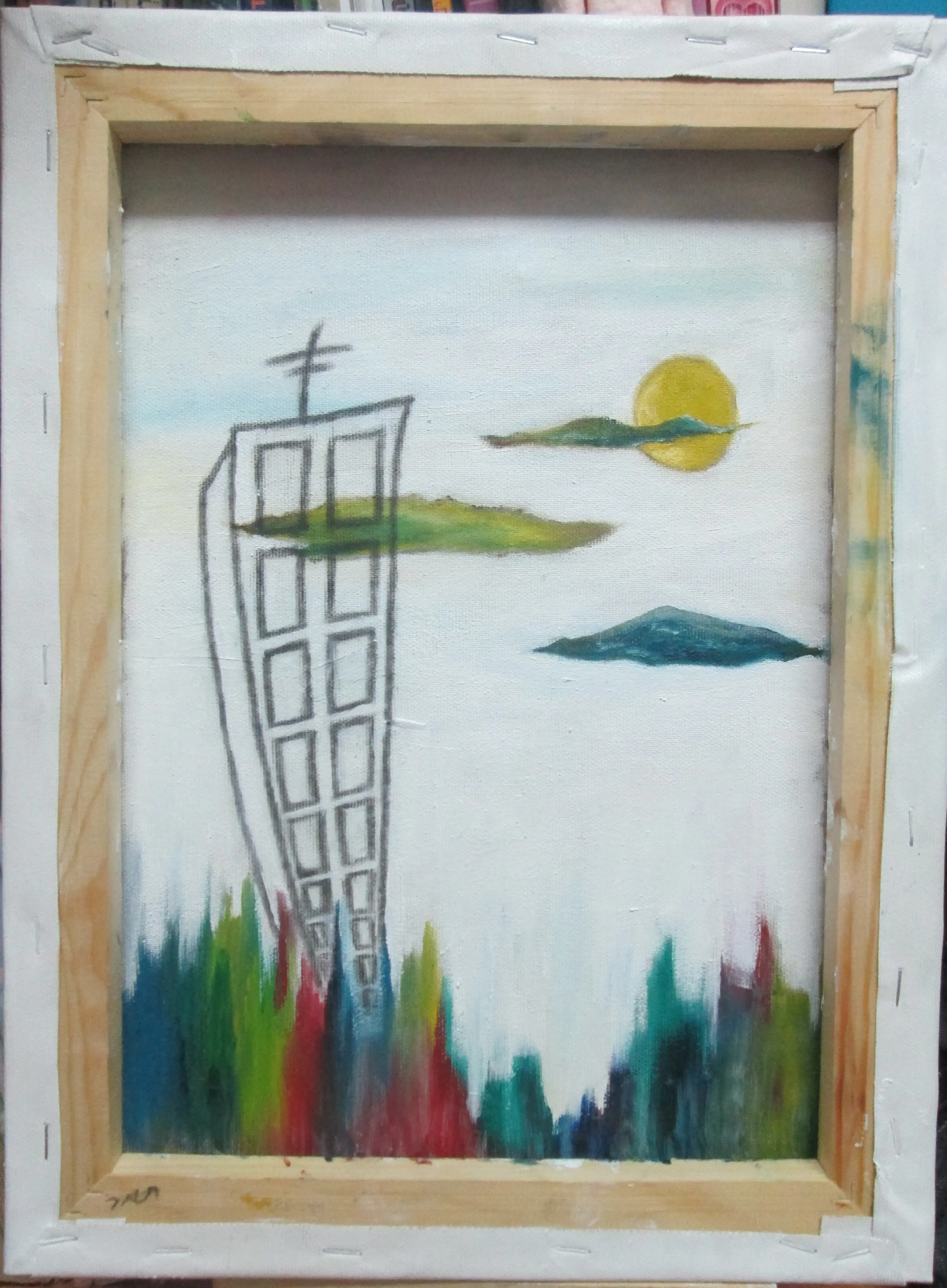 זה ציור רגיל... הוא לא נעשה במחשב או משו (אקריליק על קנווס).