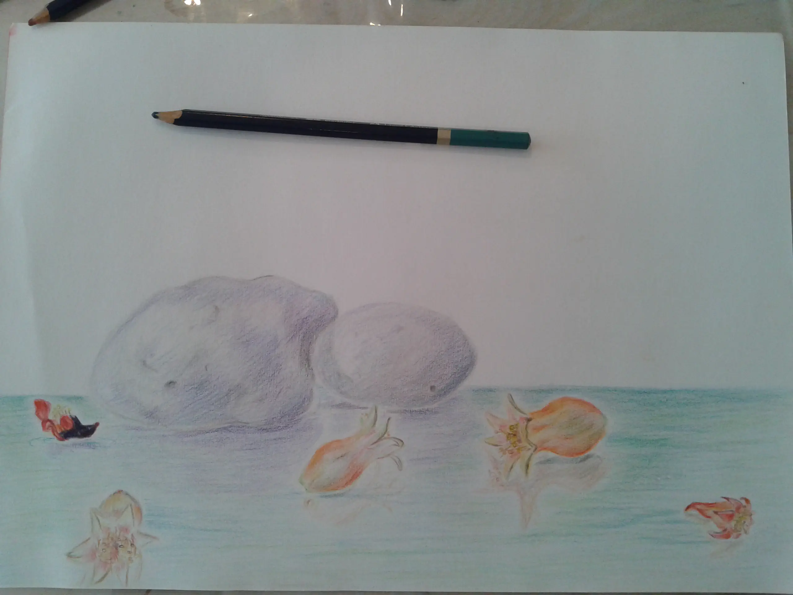 ה. אולי הייתי קצת 'משקיע' את האבנים, הן נראות צפות על המים וזה לא אמין (אולי גם קצת את הרימונים). וההשתקפות של הכתר של הרימון הימני לא קצת מאורכת מדי?