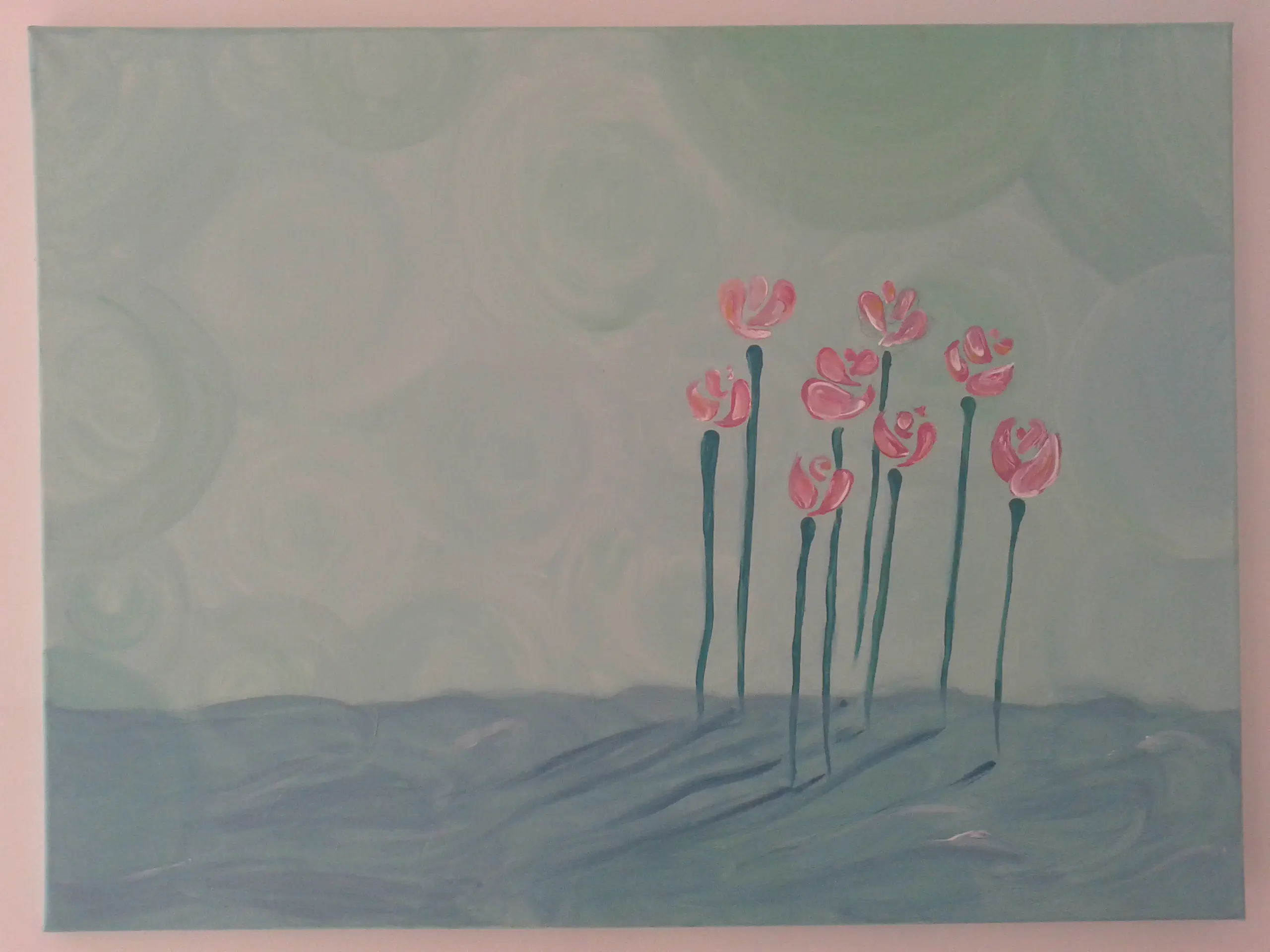 לי זה נראה כמו ים שבו עומדים הפרחים ללא משהו שיחזיק אותם יציבים.. למרות שבתמונה הם עומדים די זקוף כיאלו נלחמים לא ליפול.