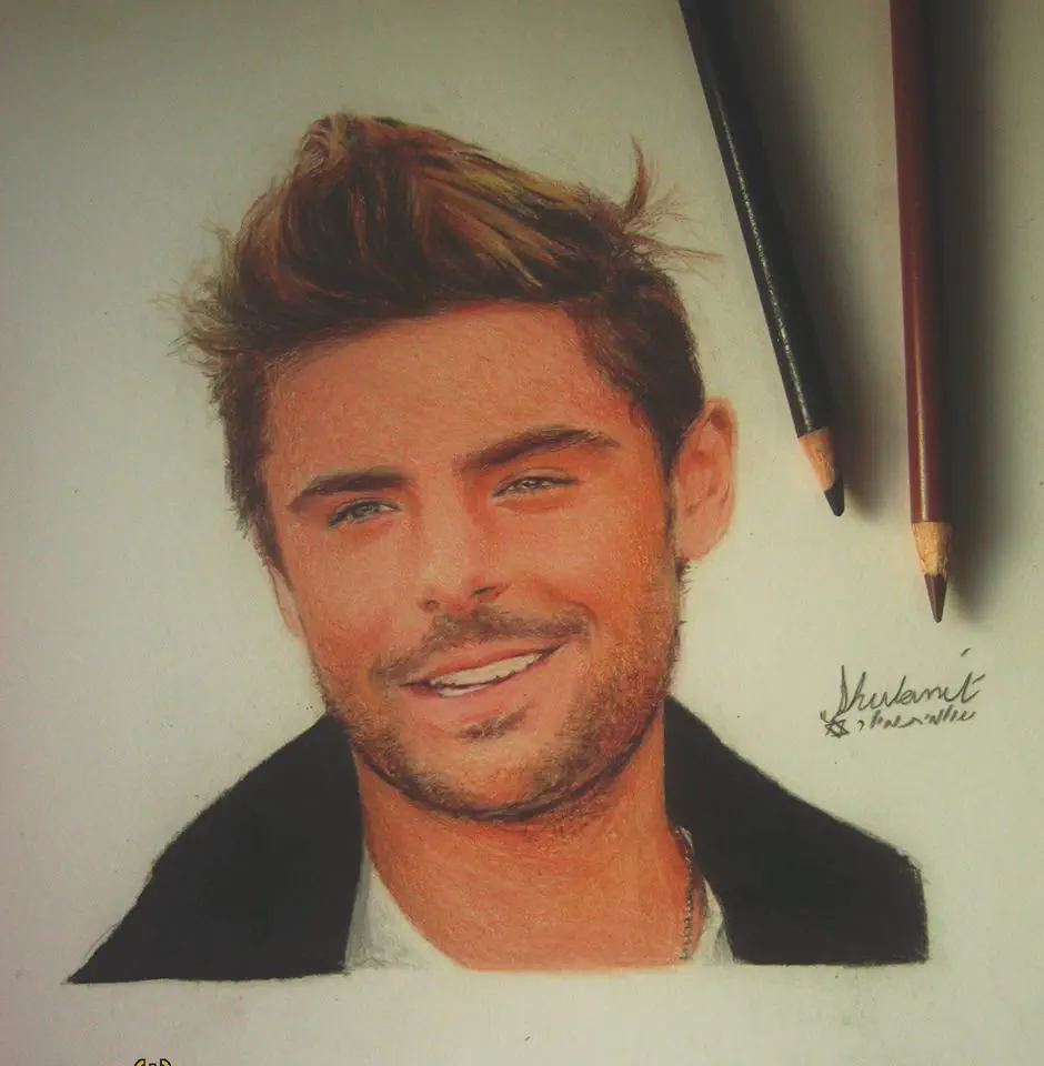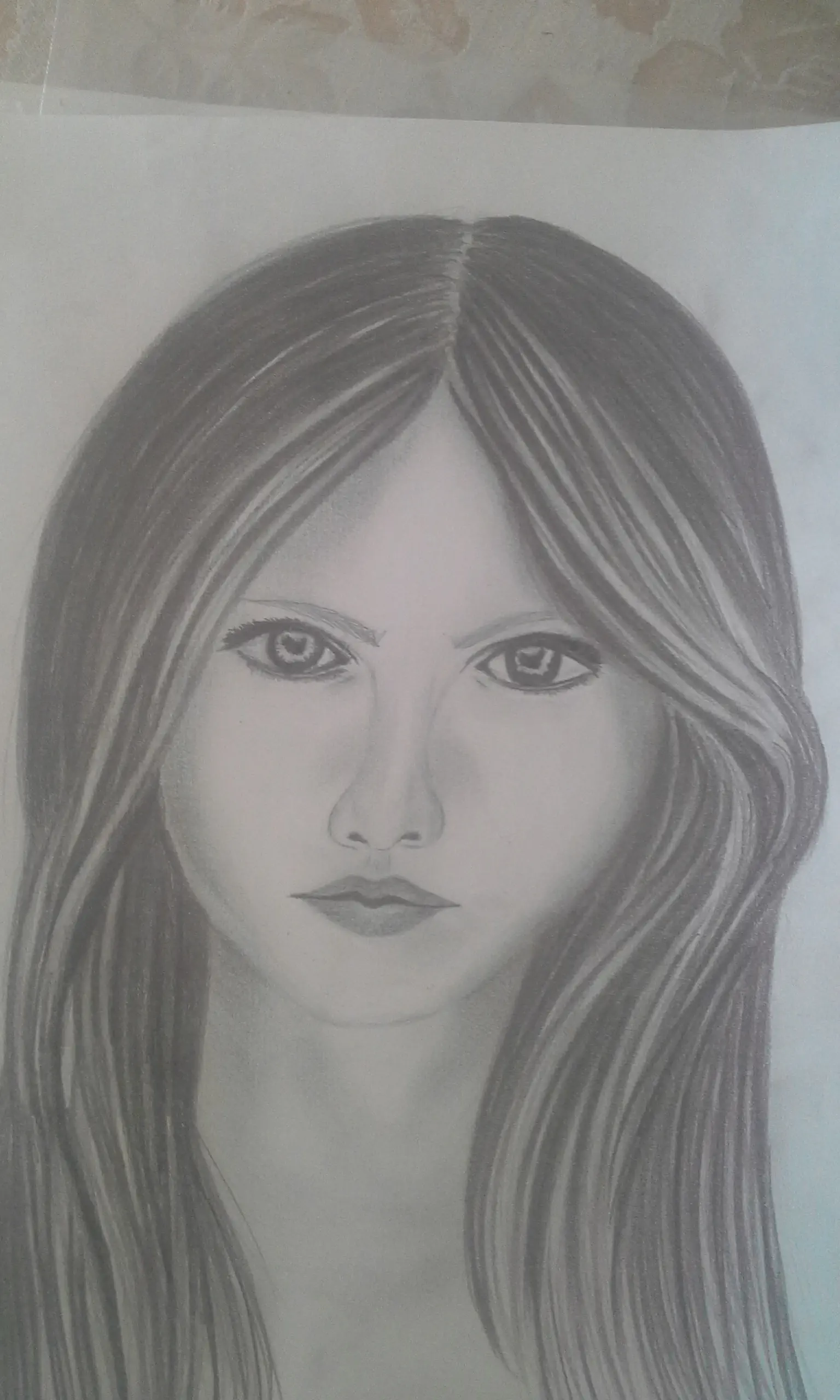 בשלב רביעי שמתי לב שהפנים ממש חיוורות לעומת השיער אז עברתי על הפנים עם עיפרון פחם..