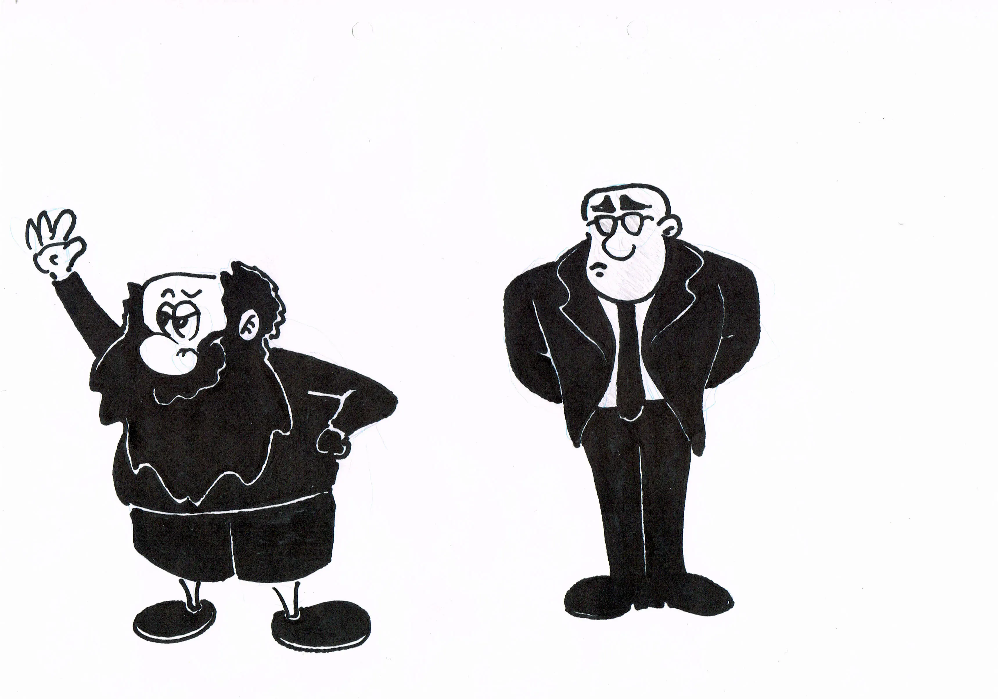 עיפרון אנימציה בשביל הסקיצה, ואז צובע בטוש שחור.רול קינמון