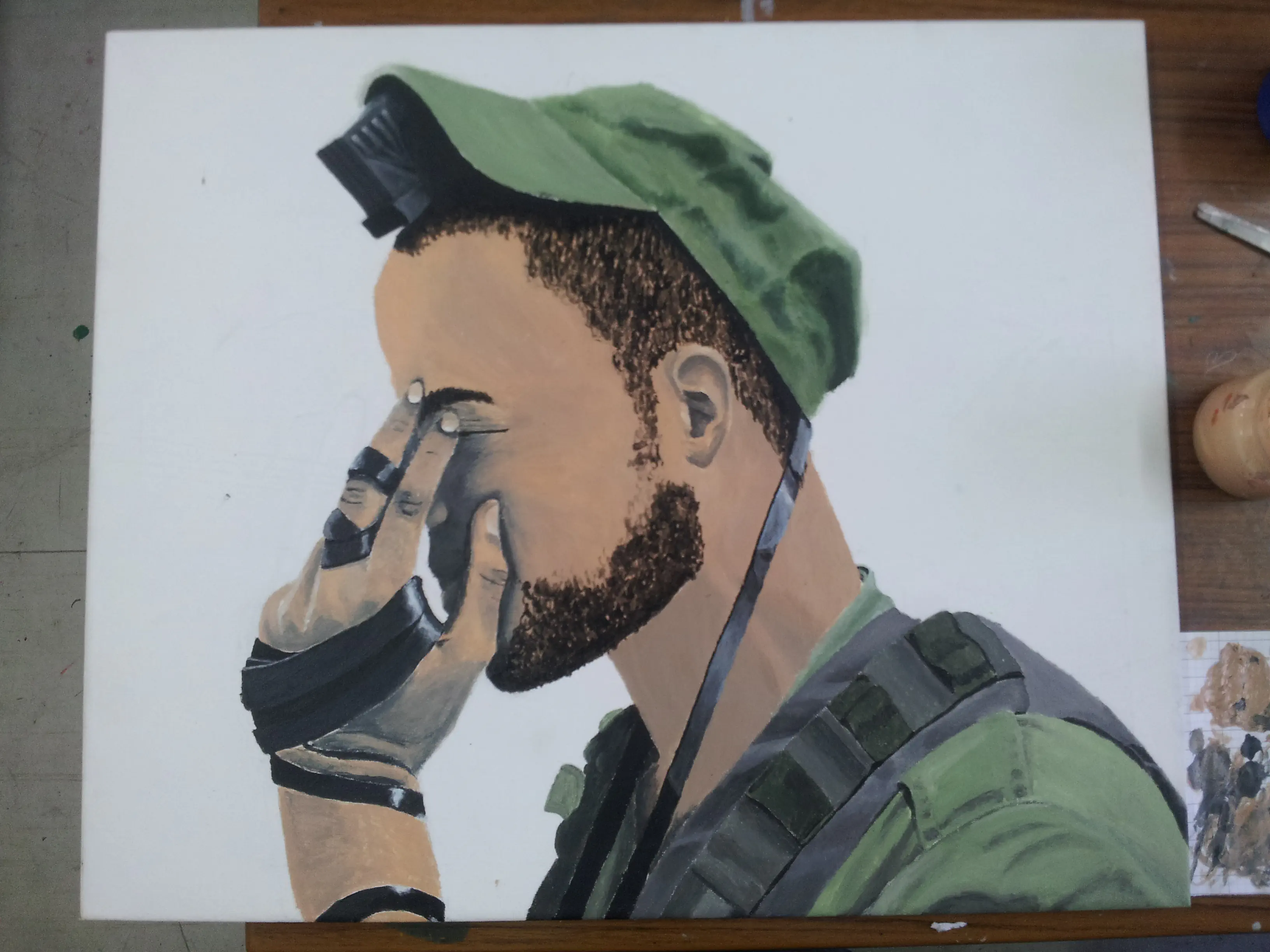 למרות שאת הכובע והמדים עשית בכמה רמות מעל שאר הציור,