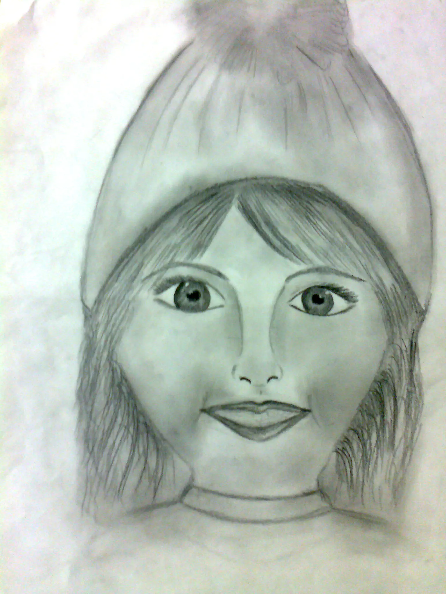 לגבי השאלה שלך- הפה לא יכול להיות ריק. תתבונני בפה של מישהו בקרבתך ותראי שרואים קצת שיניים וצל... והכובע דווקא חמוד. אולי להוסיף פס לרוחב, כדי שזה ייראה פחות כמו כובע טמבל