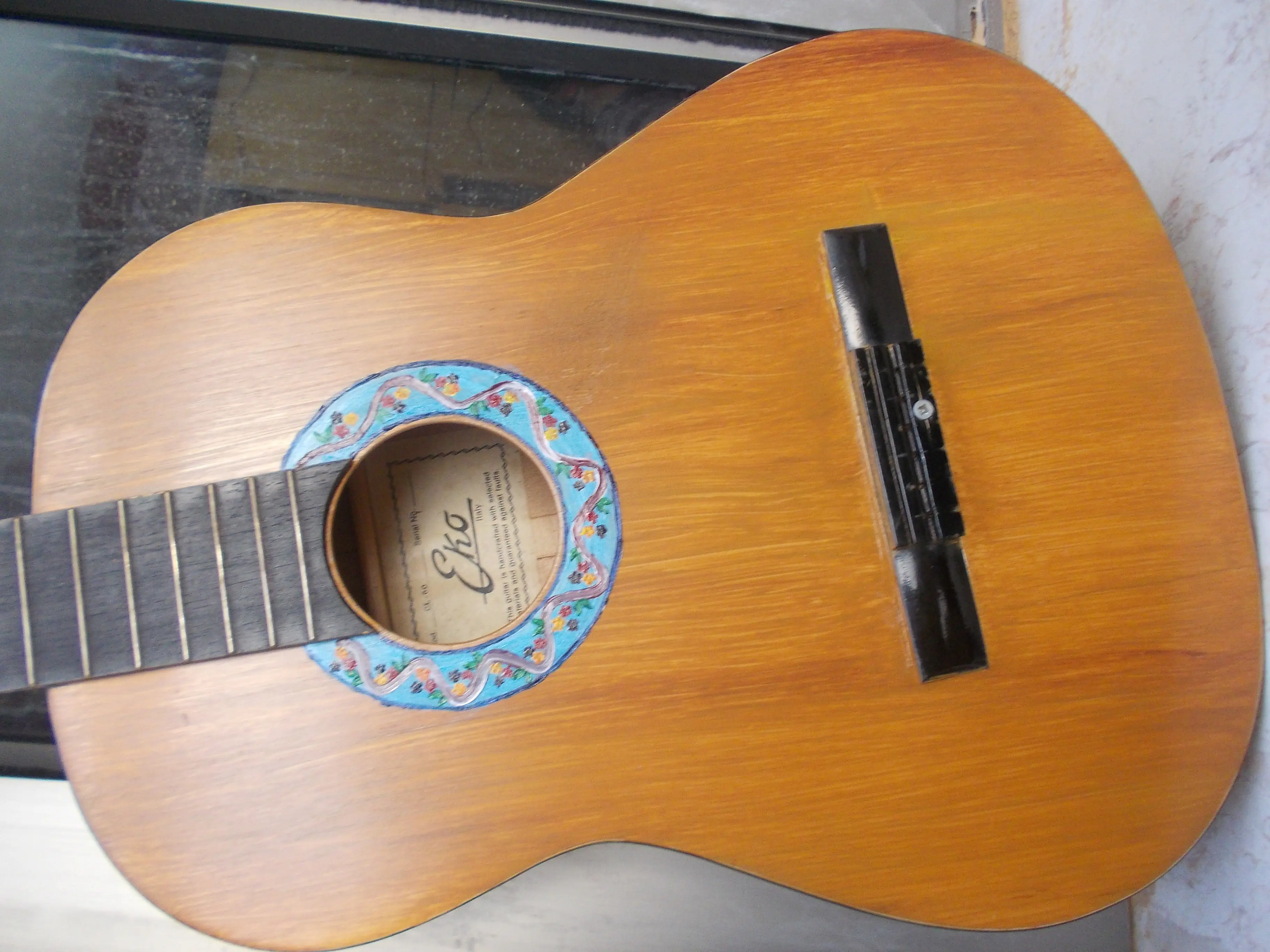 אפשר פשוט להניח בתוך הגיטרה כלי או עציץ מוכן.