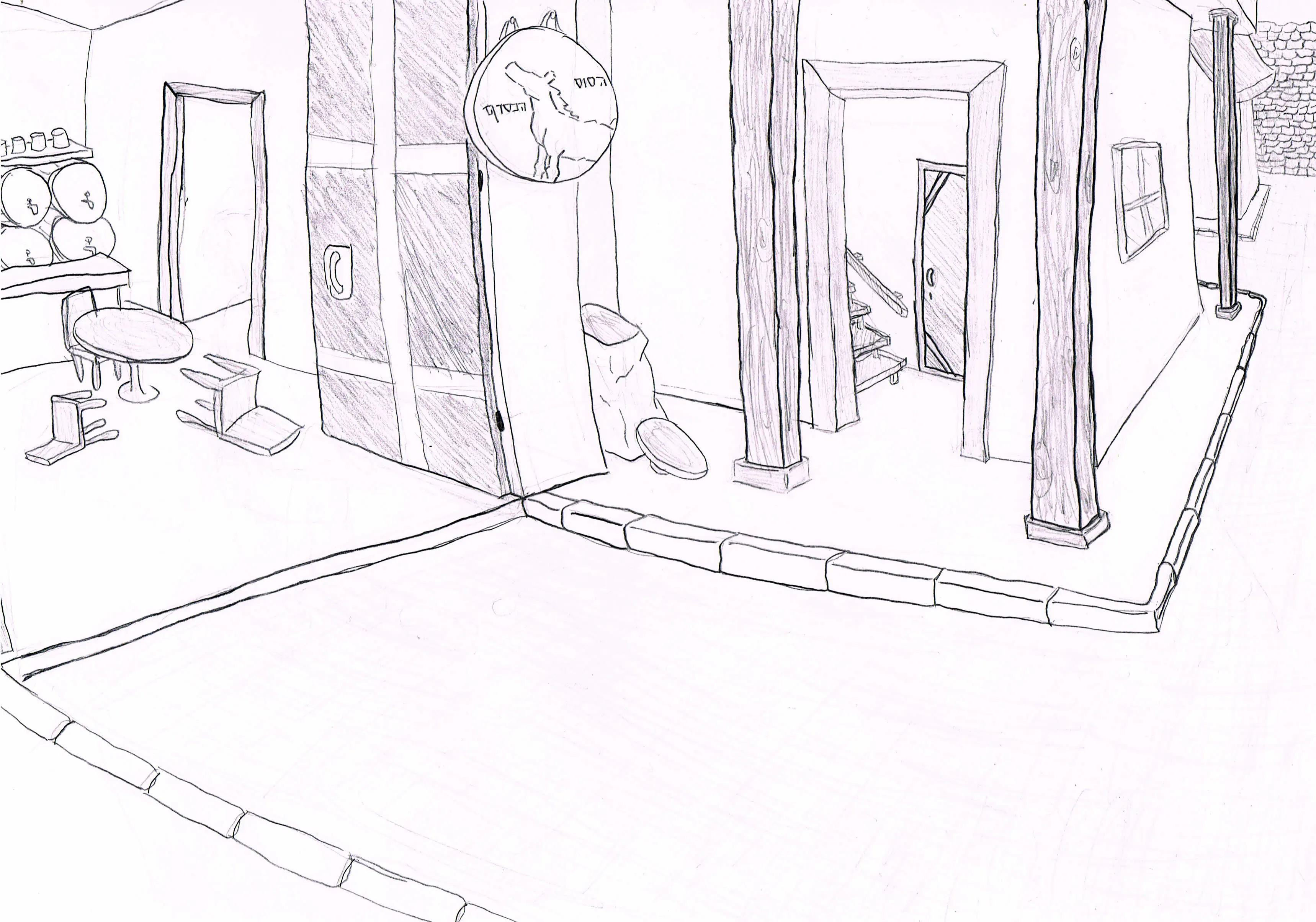 בכל אופן, אם ניכנס לפרטים- השולחן והכסאות בחדר השמאלי זערוריים ממש. והחלל בנוי בצורה לא הגיונית. הדלת הפנימים שבחדר השמאלי לא ממוקמת על אותו קו-הציר של הקיר. ובכלל, הזוית של הקיר הזאת לא ישרה, התקרה והרצפה והדלת לא ממוקמים נכון.