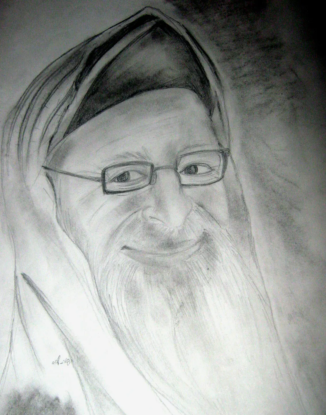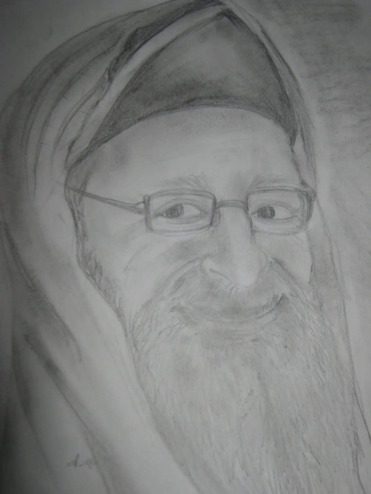 *המשקפיים-אני מניחה שניסית לצייר את הרב מרדכי אליהו? אם כן,המשפיים שלו ממש לא היו נראות ככה.תעתיקי מדוייק יותר.וגם אם זה לא הוא,המשקפיים בגודל לא אחיד ולא ממש נראות אמיתיות.